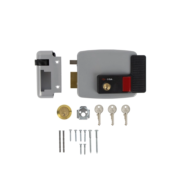 CISA 11630.50.2 – це електромеханічний накладний замок. Призначений для використання на ПРАВОСТОРОННІХ важких дверях та хвіртках з відкривання всередину. Може бути встановлений і на легких дверних полотнах. Для цього при установці слід забрати стержень червоного кольору для забезпечення м'якості закривання.