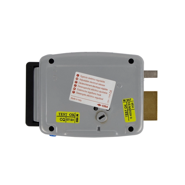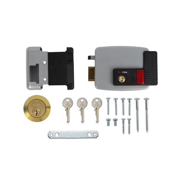 CISA 11630.50.4 – це електромеханічний накладний замок. Призначений для використання на ЛІВОСТОРОННІХ важких дверях та хвіртках з відкривання назовні. Може бути встановлений і на легких дверних полотнах. Для цього при установці слід забрати стержень червоного кольору для забезпечення м'якості закривання.