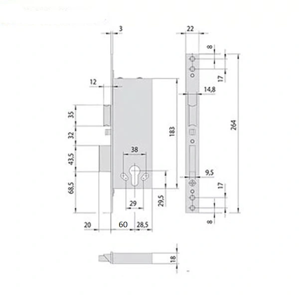 - Замок підходить для правих та лівих дверей.
