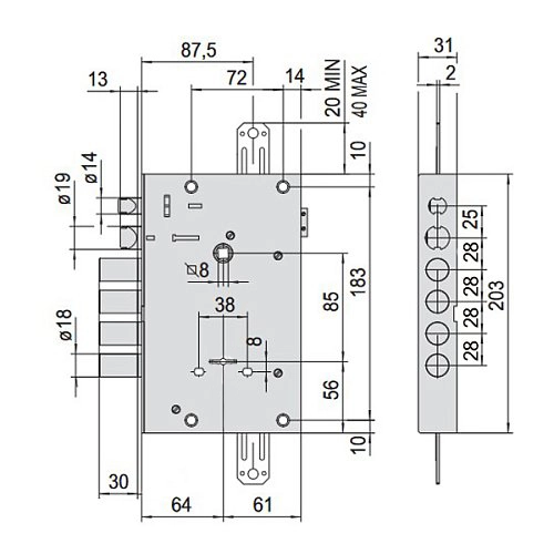 Електромеханічний замок CISA 17665 (BS64*85мм) сувальдний з перекодуванням без торцевої планки