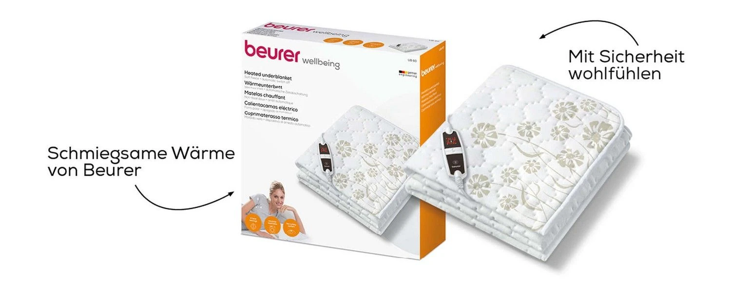 Електропростирадло Beurer, від мережі, 150x80см, 60Вт, 4 режими, фліс, білий
