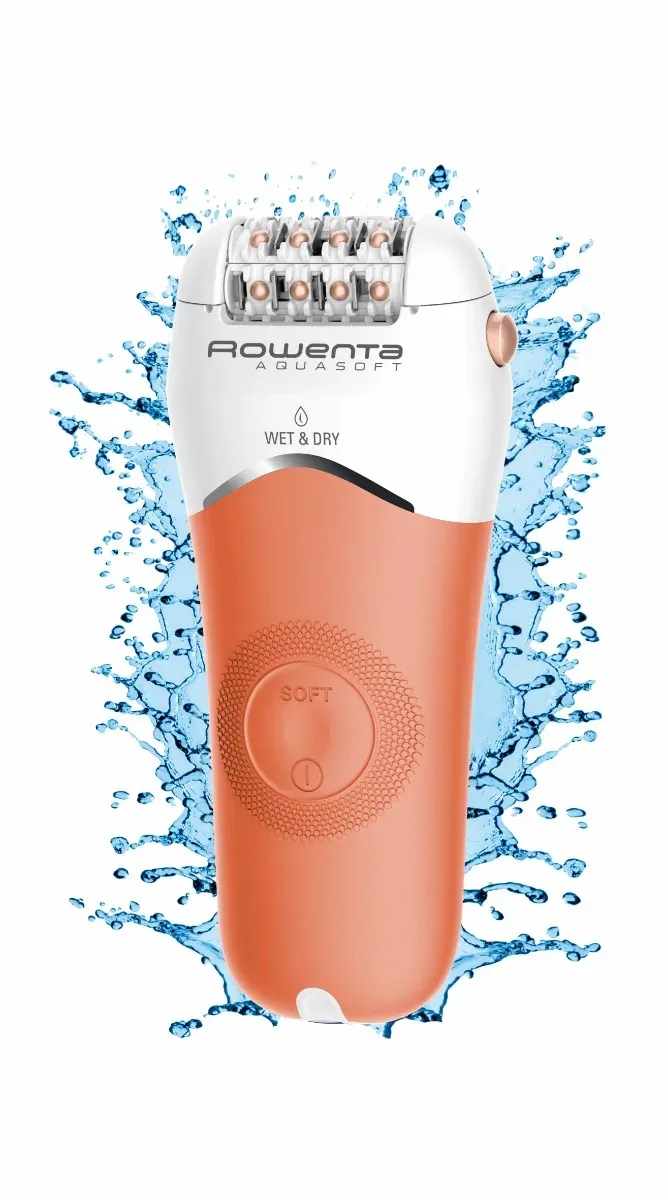 Видаляйте волосся дбайливо, швидко і без побічних ефектів з новим епілятором Rowenta Aquasoft. Завдяки запатентованій технології проти роздратування Anti-Irritation і спеціальному м'якому покриттю насадки епілятор ефективно видаляє волоски, не дратуючи шкіру. Корпус епілятора на 100% водонепроникний, тому пристрій можна використовувати як на сухій шкірі, так і під час прийняття душу або ванни, адже вода чинить додаткову заспокійливу дію на шкіру під час епіляції.