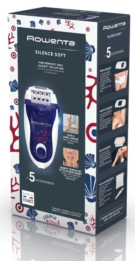 Насадки для пахв і бікіні забезпечують турботливе видалення волосся у найделікатніших ділянках, а пілінгова голівка готує шкіру до більш м'якої епіляції.