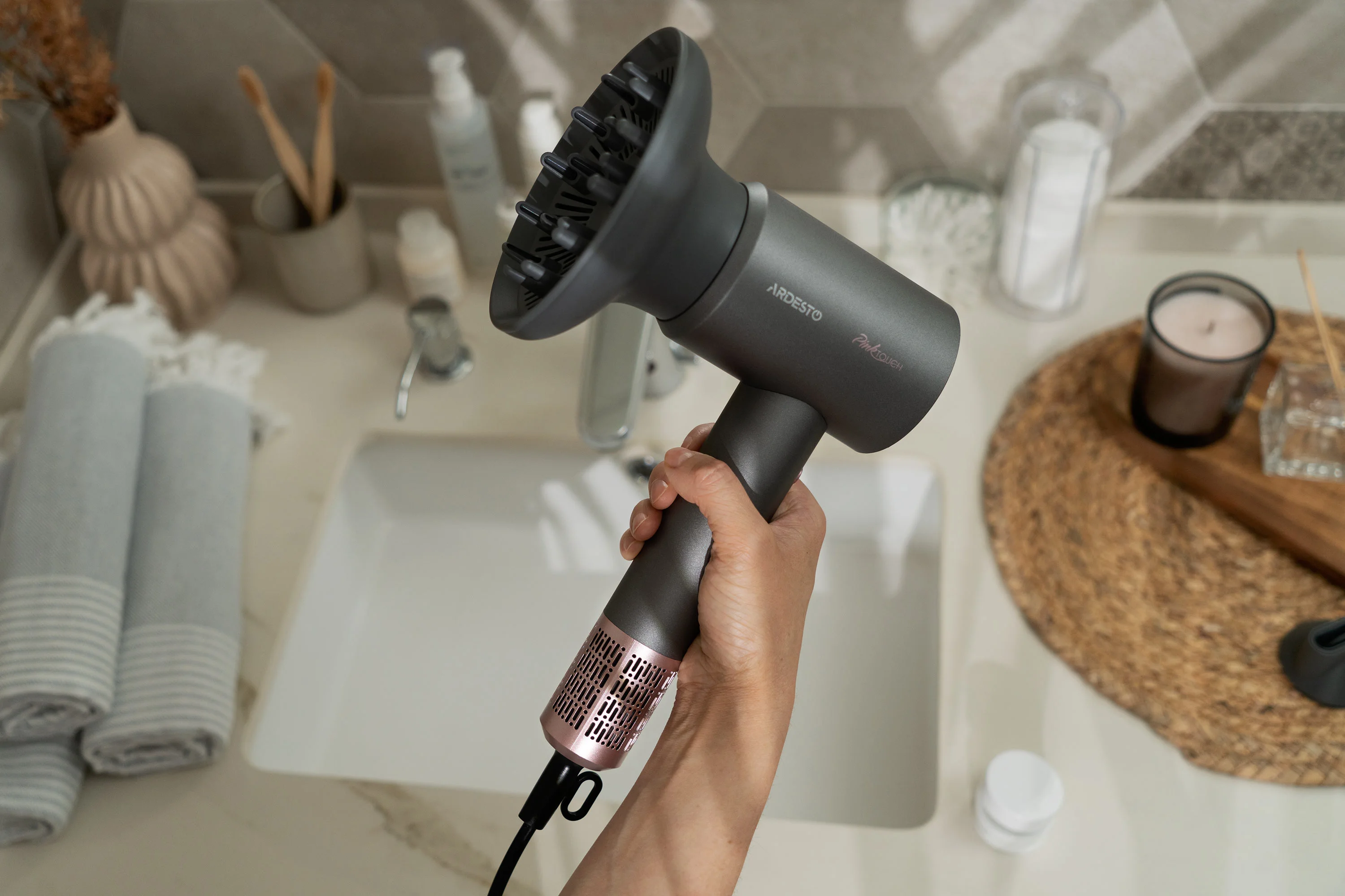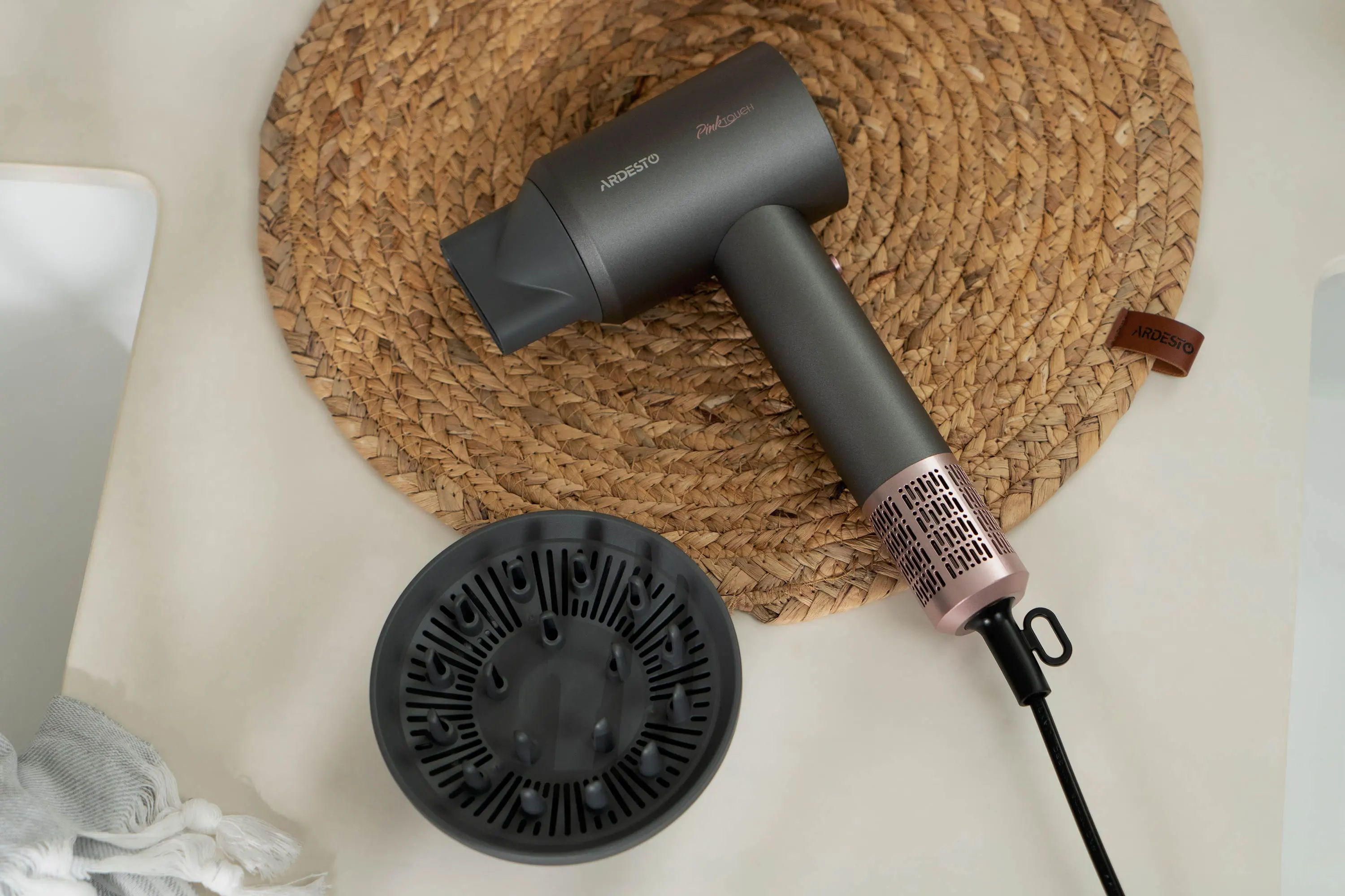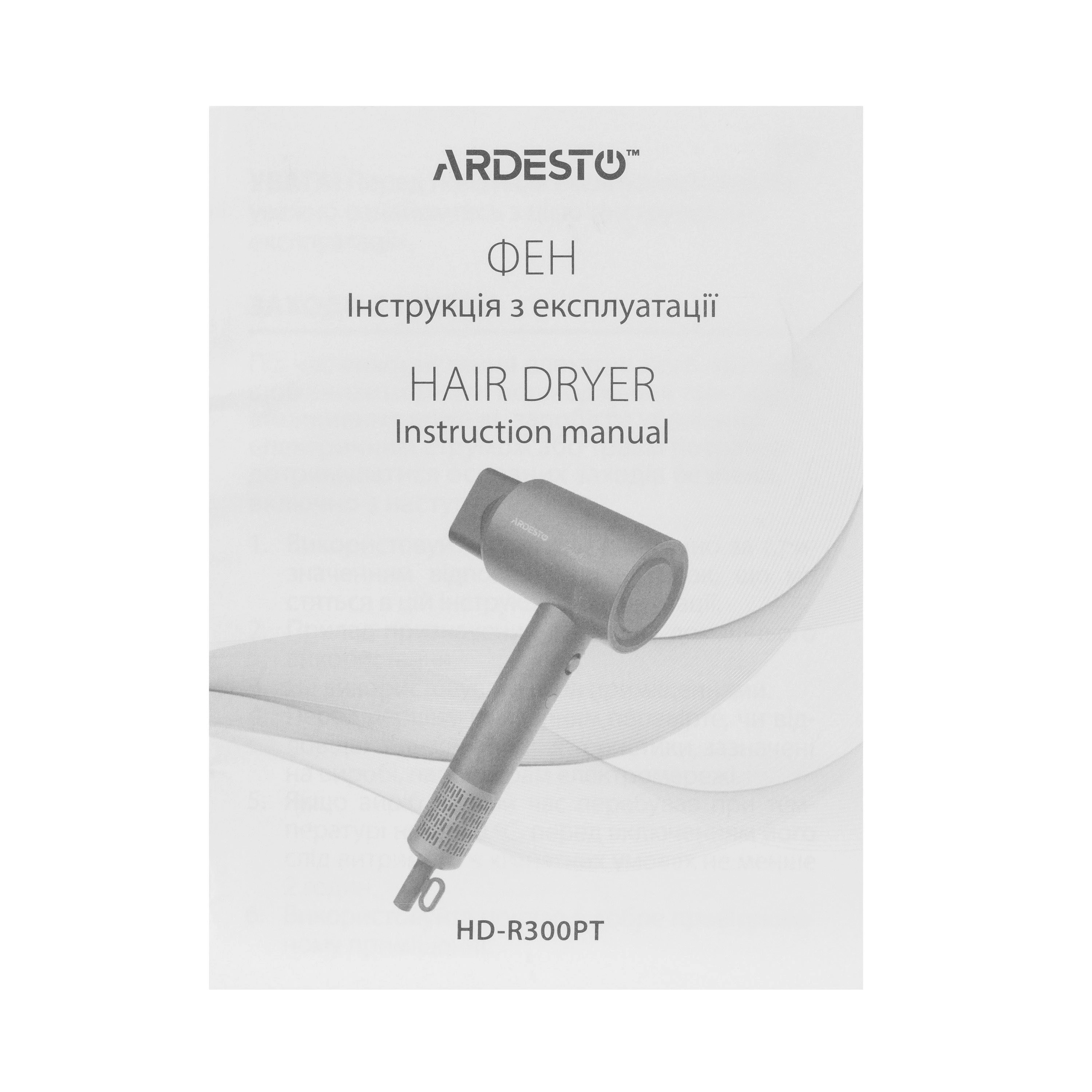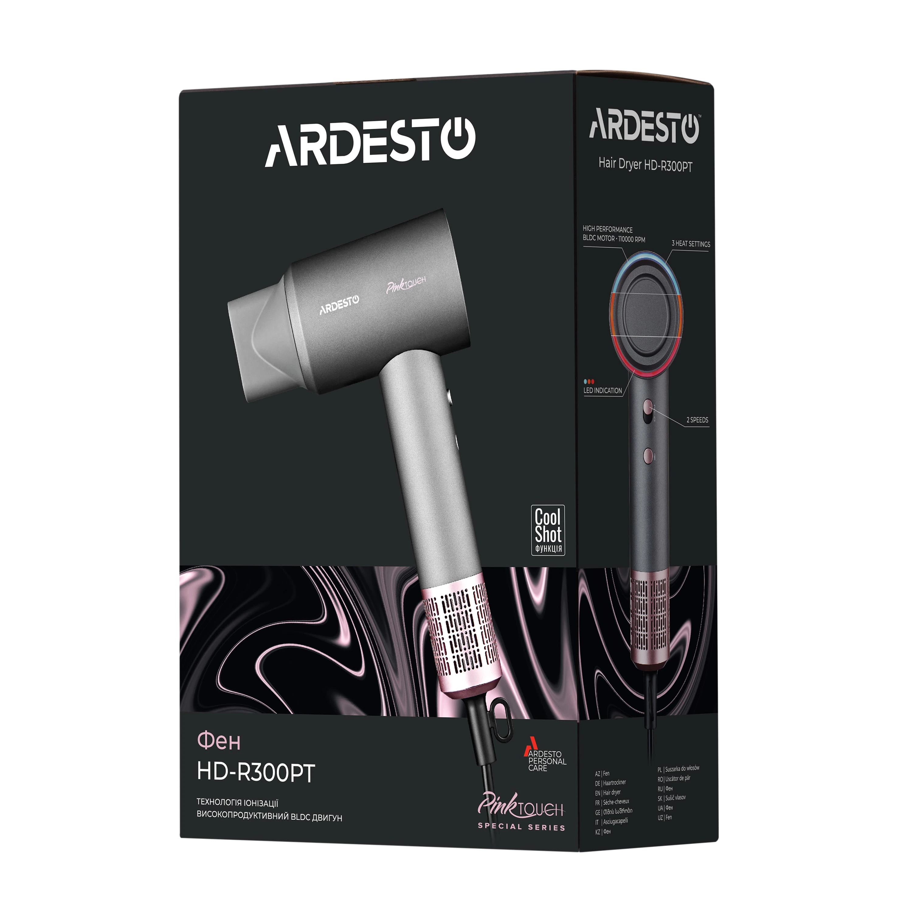 Фен Ardesto Pink Touch, 1600Вт, 2 швидкості, 3режими, іонізація, дифузор, магнітні насадки, сір