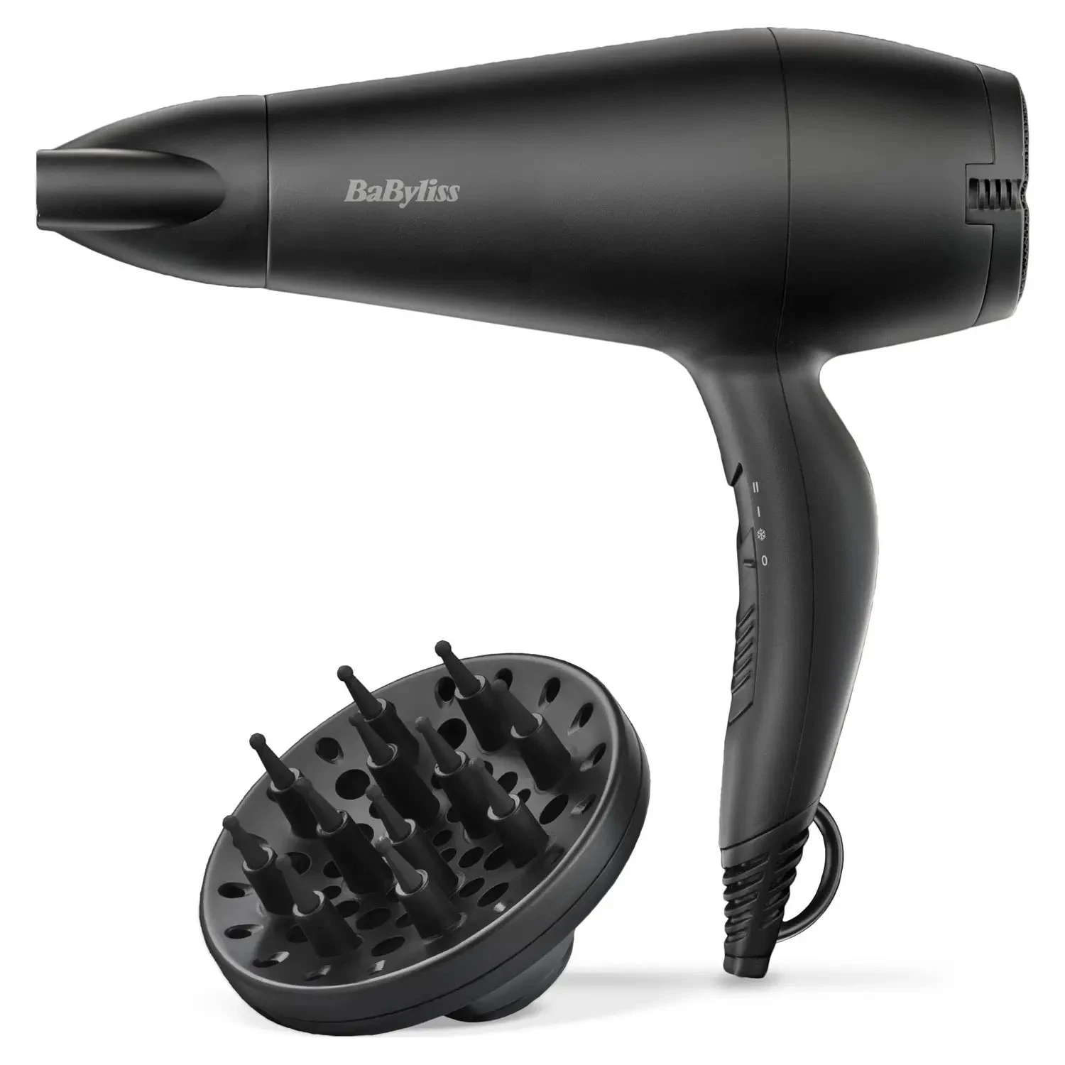 Фен Babyliss, 2000Вт, 2 режими, іонізація, холодний обдув, 2 насадки, чорний