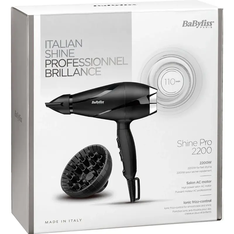 Фен Babyliss, 2200Вт, 2 режими, дифузор, іонізація, холодний обдув, чорний