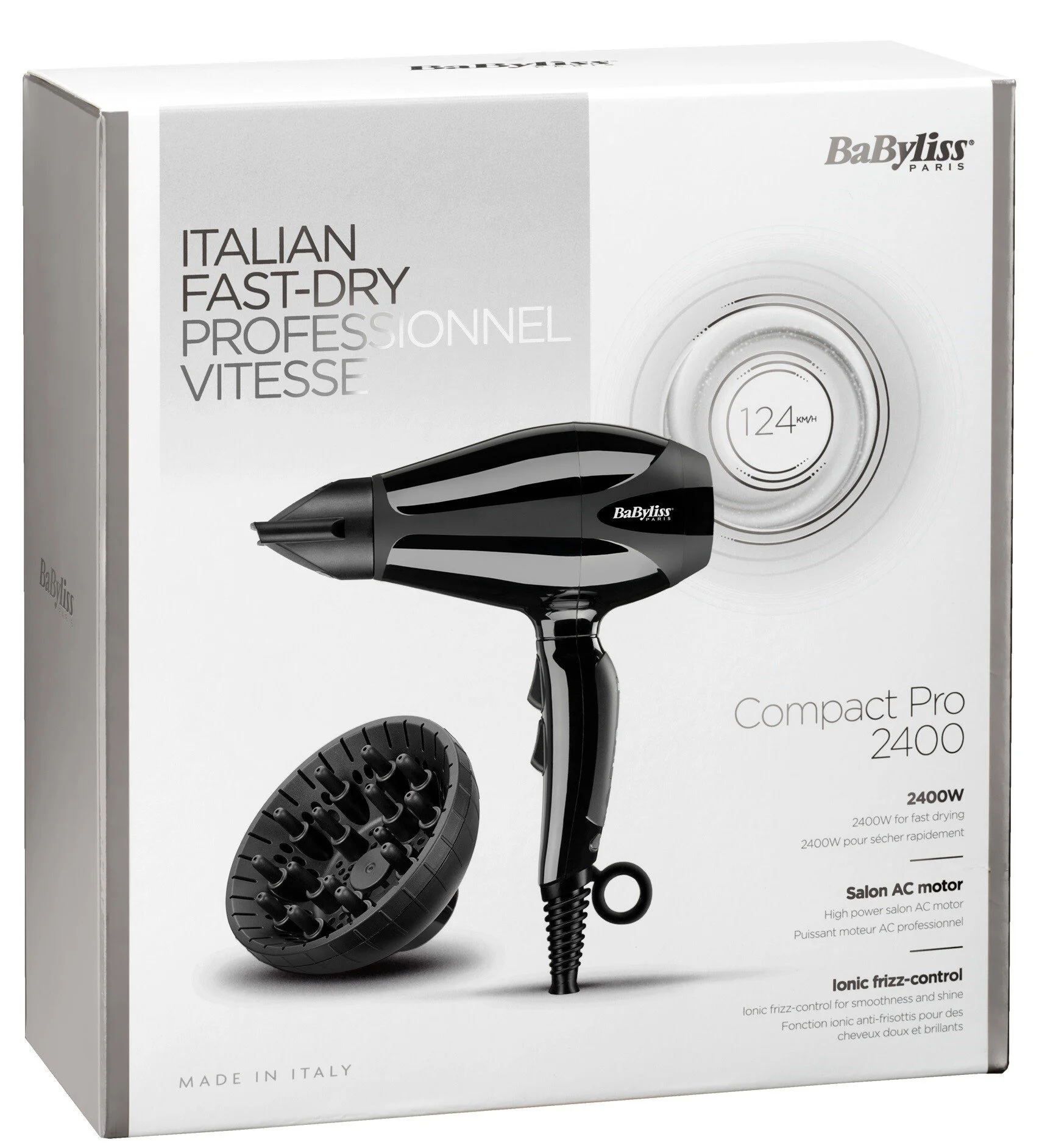 Фен Babyliss, 2400Вт, 3 режими, дифузор, іонізація, холодний обдув, чорний