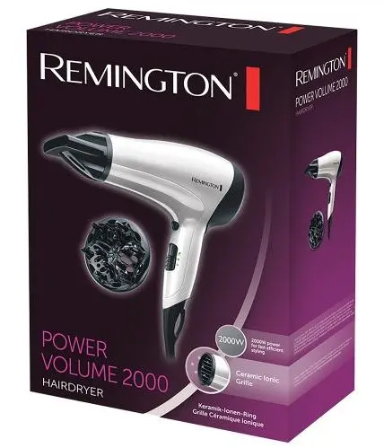 Фен Remington Power Volume 2000, 2000Вт, 3 режими, дифузор,турмалінова іонізація, холодний обдув, бі