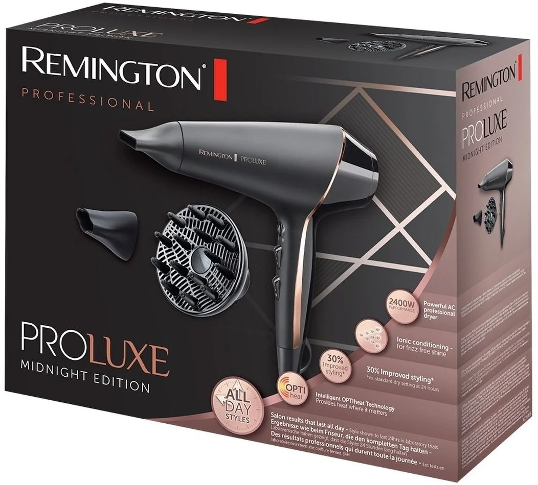 Фен Remington ProLuxe Midnight Edition, 2400Вт, 3 режими, дифузор, іонізація, холодний обдув, чорний