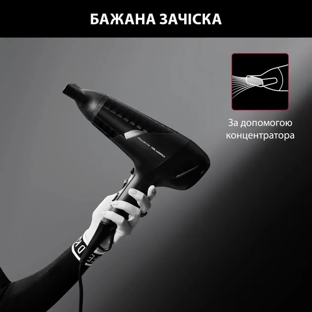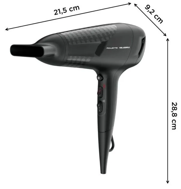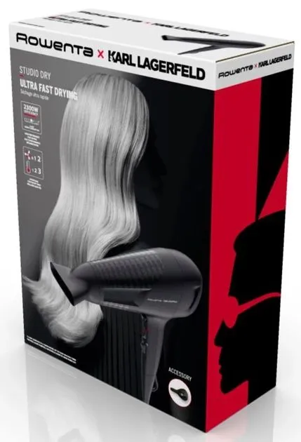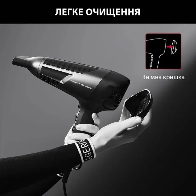 Фен Rowenta Studio Dry x Karl Lagerfeld, 2100Вт, 3 режими, холодний обдув, чорний