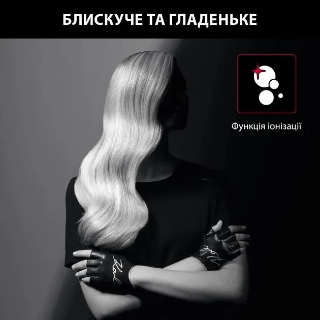 Фен Rowenta POWERLINE KARL LAGERFELD CV591LF0. Відкрийте для себе ідеальну укладку з легким блиском, яка завжди привертає увагу! Фен Rowenta x KARL LAGERFELD Powerline забезпечує енергозберігаючу потужність 2300 Effiwatt, а іонний підсилювач зменшує завивку та робить ваше волосся гладким, слухняним і надає сяючого блиску. Відкрийте для себе ідеальний фен, доповнений інтелектуальними функціями, такими як легке регулювання швидкості/температури для повного контролю над укладанням, термоконтроль для захисту вашого волосся тощо.