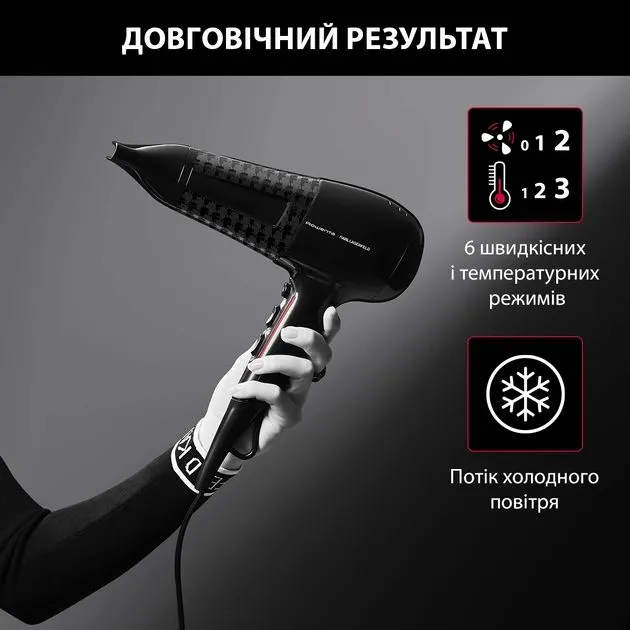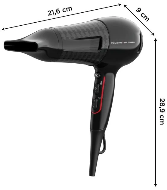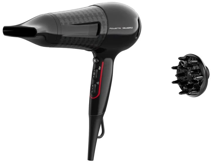 Фен Rowenta x Karl Lagerfeld Powerline, 2100Вт, 3 режими, дифузор, іонізація, холодний обдув, чорний