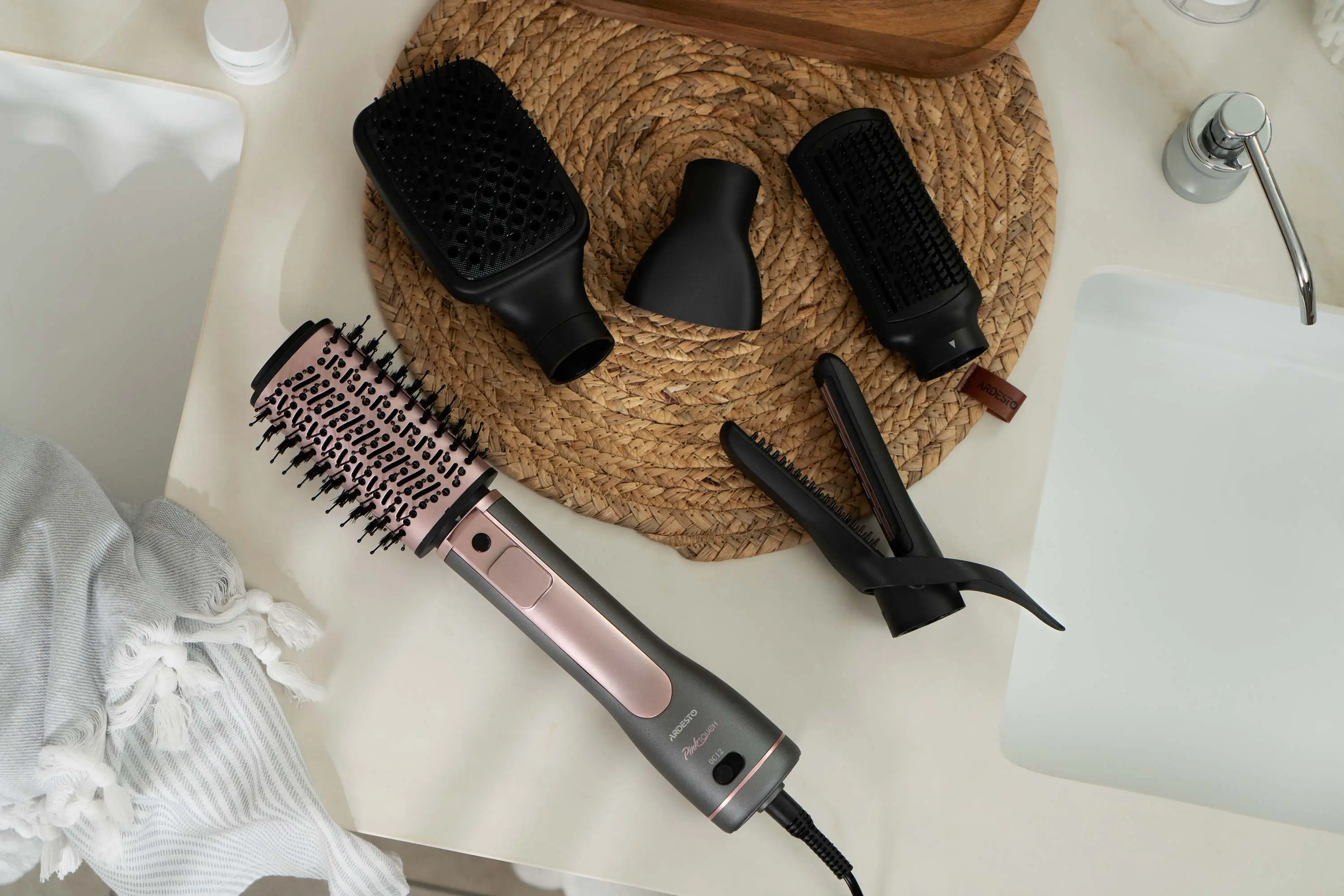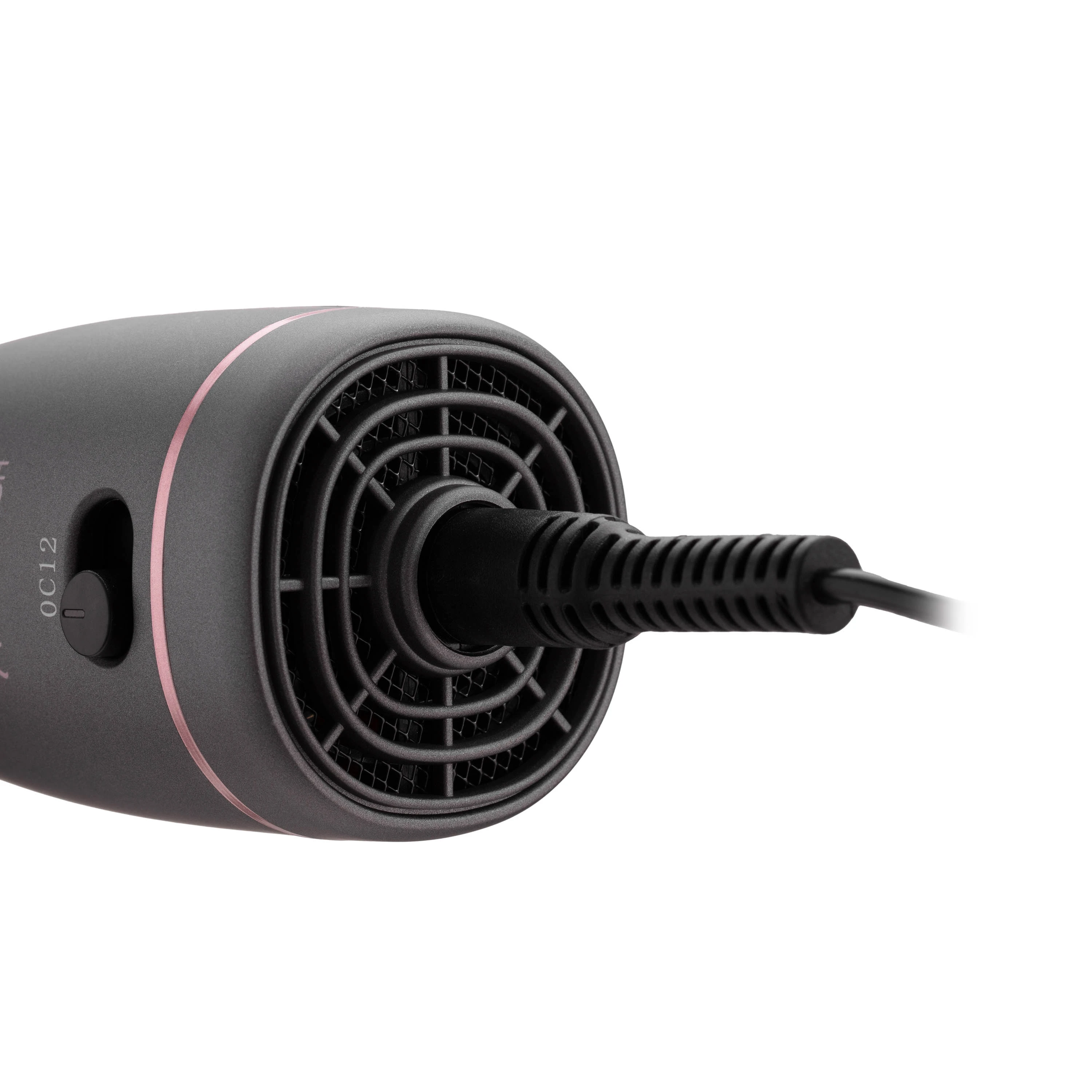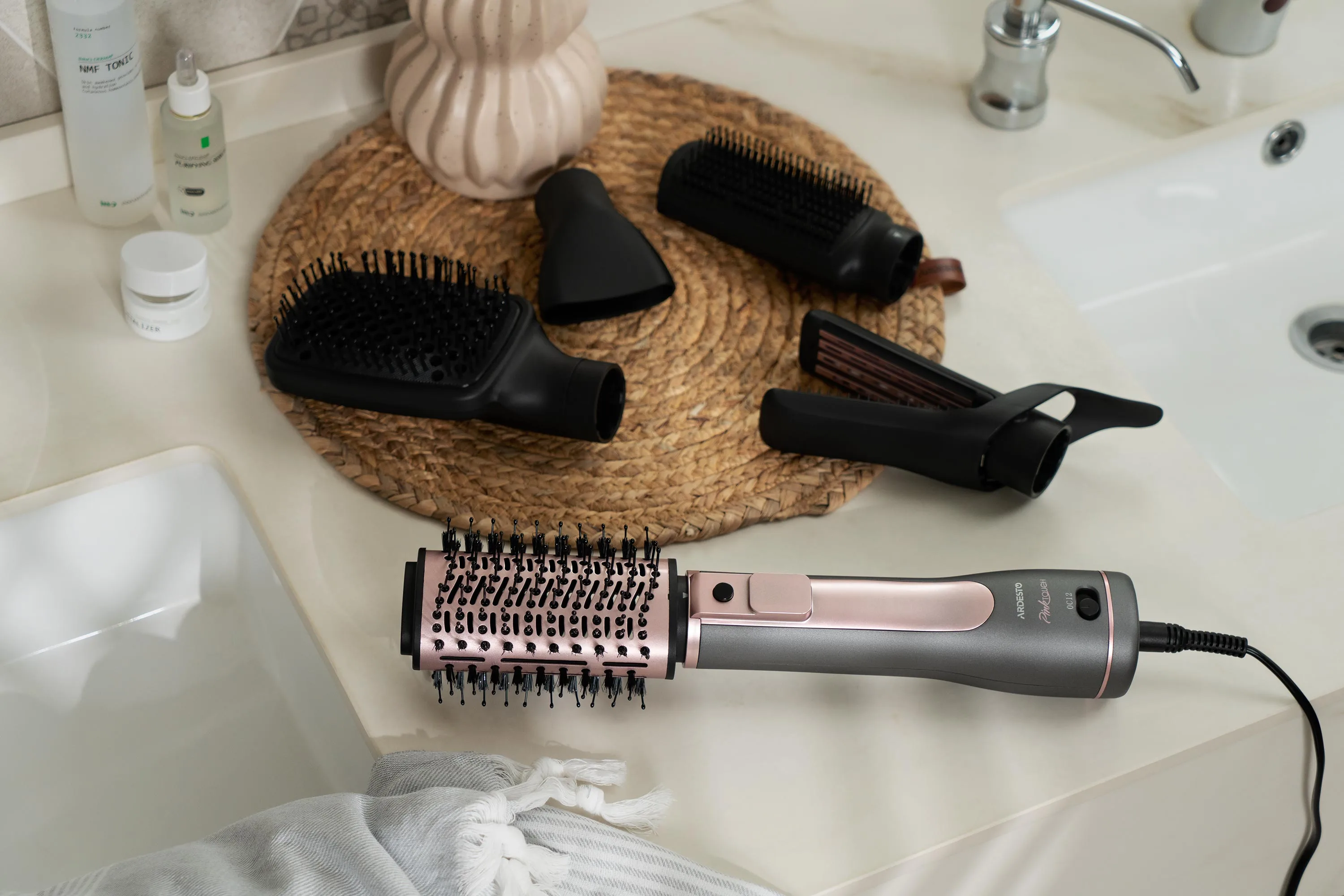 ARDESTO Brush Pink Touch – універсальний інструмент для стайлінгу – має в комплекті п’ять насадок: фен-щітка для завивання, дві фен-щітки для сушіння та надання об’єму, щипці-гофре для створення прикореневого об’єму й концентратор для фена. Завдяки двом температурним/швидкісним режимам і функції Cool Shot цей стайлер надає широкі можливості для створення бажаної укладки. Технологія іонізації гарантує блиск і здоровий вигляд волосся, запобігаючи їх пересушуванню й пошкодженню.