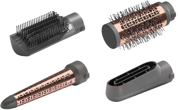 Фен-щітка Babyliss, AS136E, 1000 Вт, 4 насадки, сірий. Фен-щітка Babyliss AS136E потужністю 1000 Вт допоможе не тільки висушити, а й укласти волосся. У комплект входять чотири аксесуари, які дозволять створити різні зачіски та поекспериментувати з образами. Ця модель має два режими роботи. Регулювання залежить, повзунковий перемикач зручно розташований на рукояті, так що ви зможете змінювати налаштування одним пальцем, не перериваючись. Довгий мережевий шнур не сковує руху.