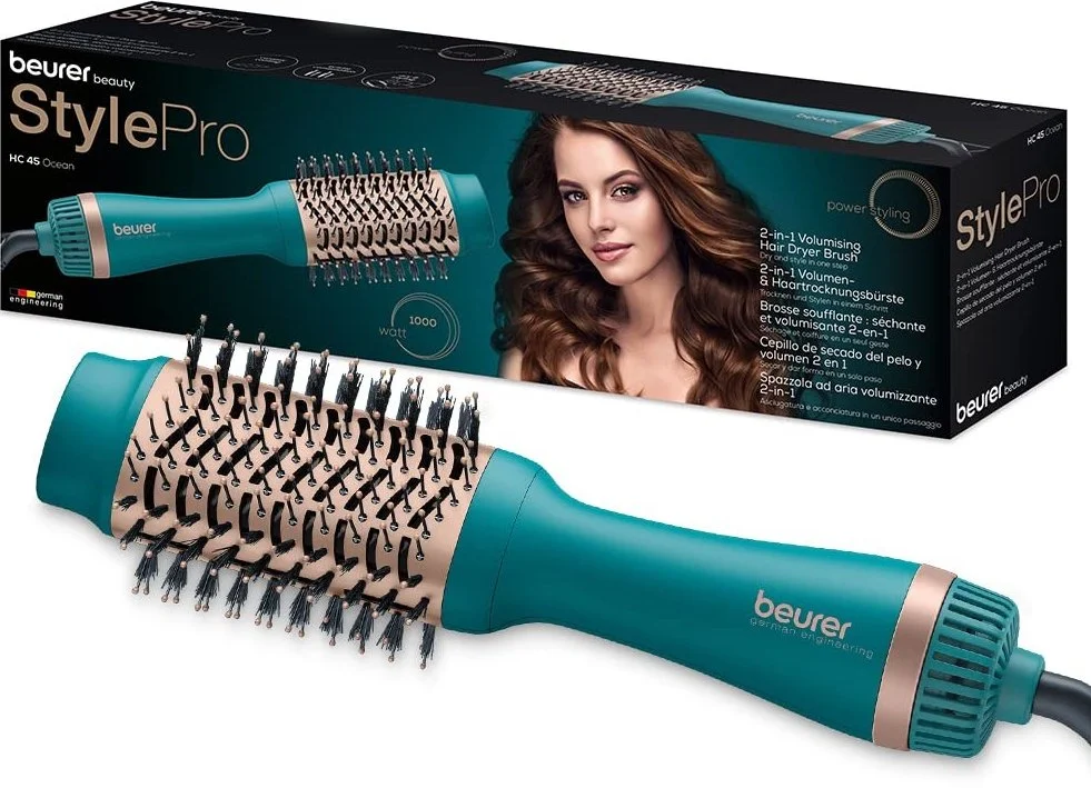 Фен-щітка Beurer, 1000Вт, режимів-3, іонізація, холодний обдув, зелений