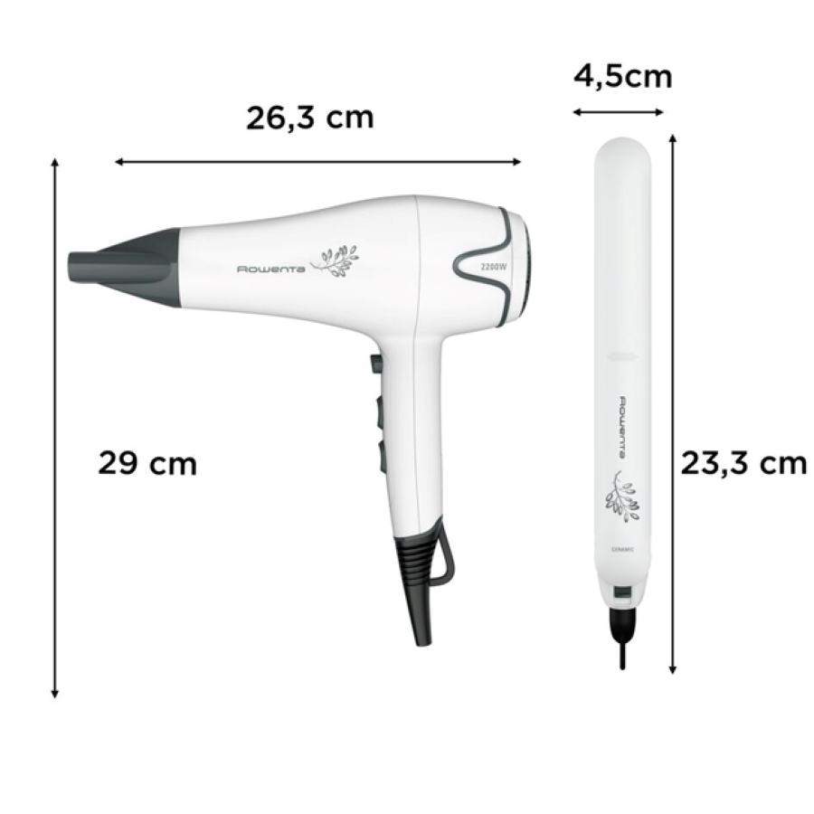 Фен+випрямляч Rowenta набір Pure Collection, 2200Вт, 2 режими, дифузор, щипці для волосся(200°С, кер