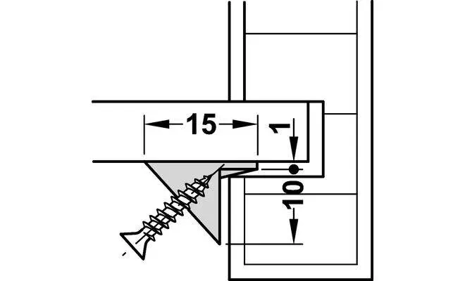 Фіксатор задньої стінки, без попередньо змонтованого шурупа для ДСП, виготовлений з пластмаси білого кольору. Монтаж фіксатора виконується шляхом прикручування до задньої стінки і корпусу.