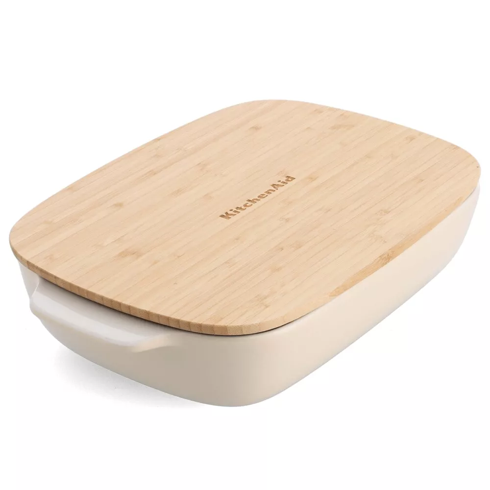 Форма для випікання з кришкою KitchenAid керамогранітна, 8,8 х24, 8х40, 4 см, 3,8 л, кремовий колір