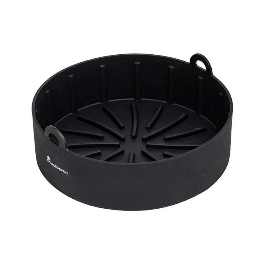 Використовуйте цю круглу силіконову форму розміром 22 х 8,5 см, призначену для фритюрниці, щоб ще ефективніше реалізовувати всі ваші рецепти. Виготовлена з силікону, тому вона чудово витримує високі температури фритюрниці. Рельєфні лінії на внутрішній поверхні форми допомагають гарячому повітрю ефективніше циркулювати і відокремлювати жир від кожного продукту. Спеціалізований посуд для фритюрниць, який дуже легко миється.