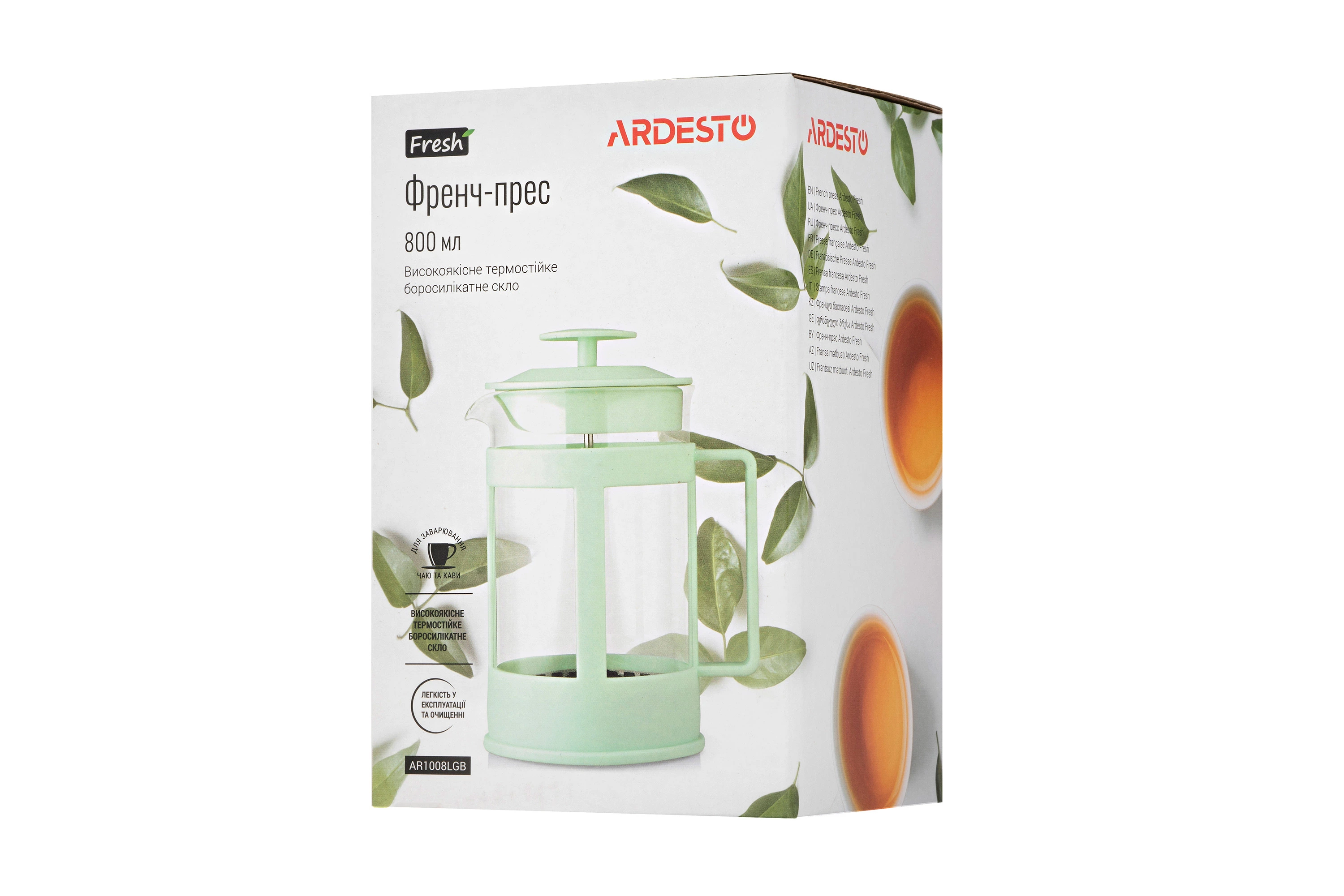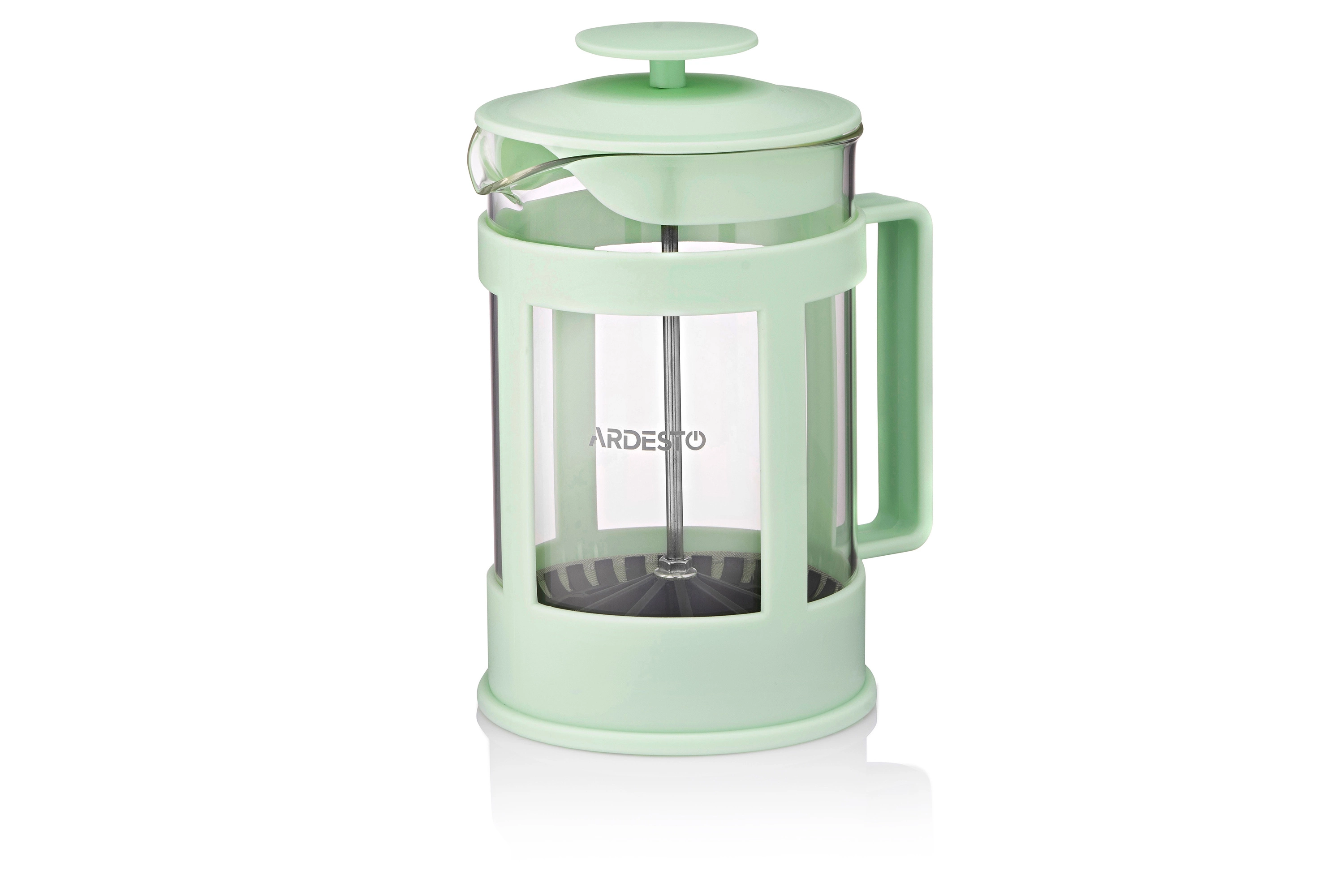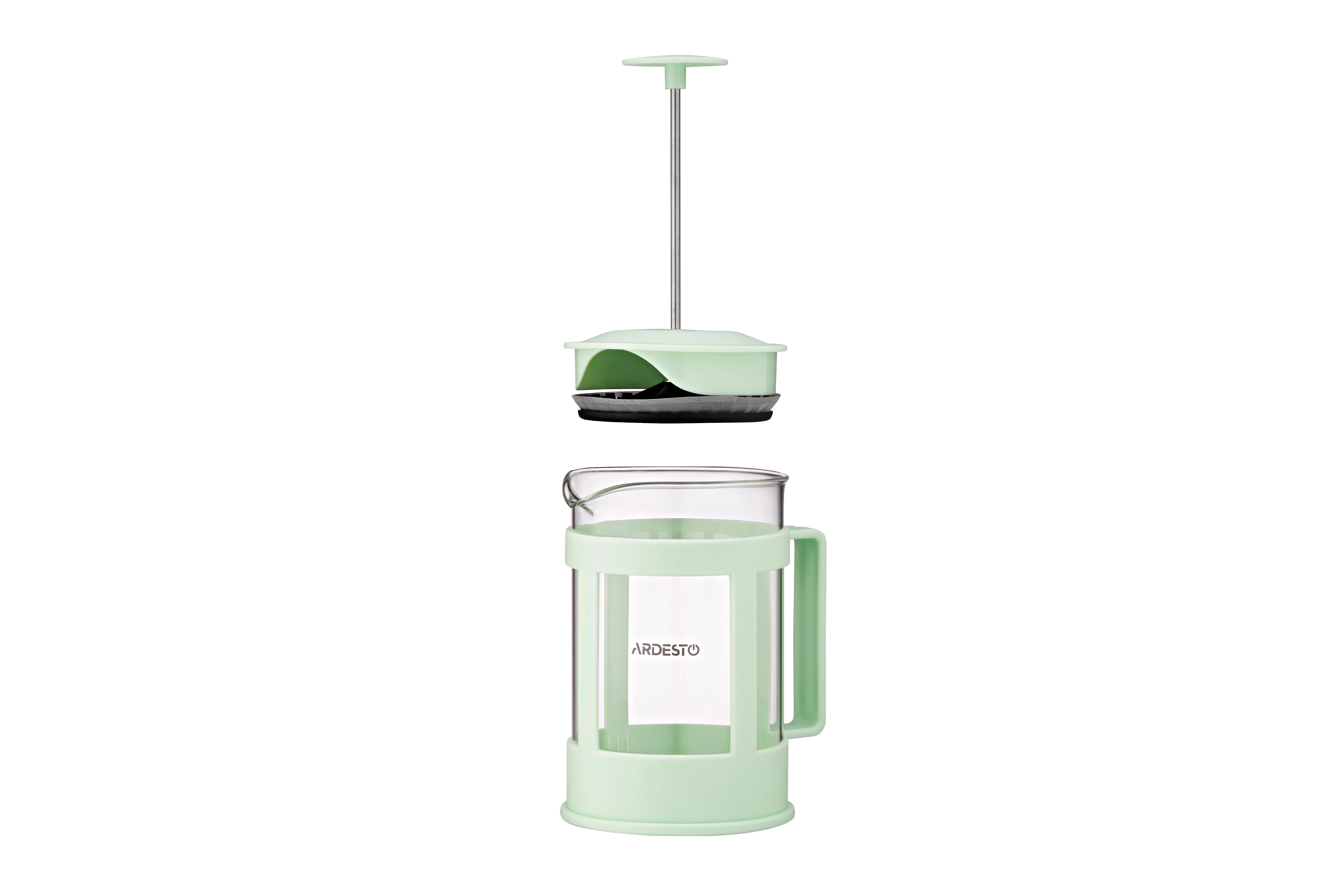 Френч-прес Ardesto Fresh, 800мл, боросилікатне скло, пластик, прозорий, зелений світлий