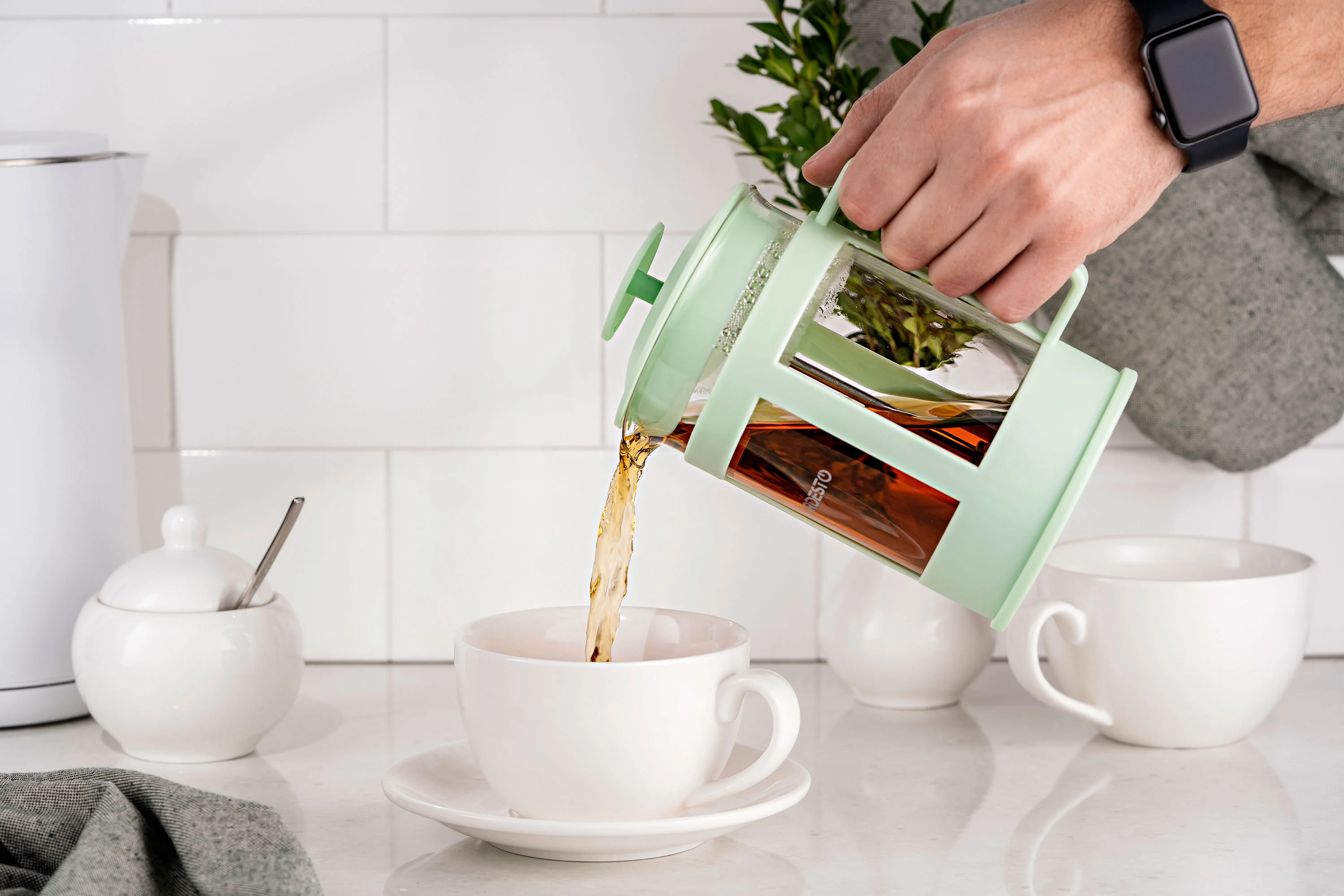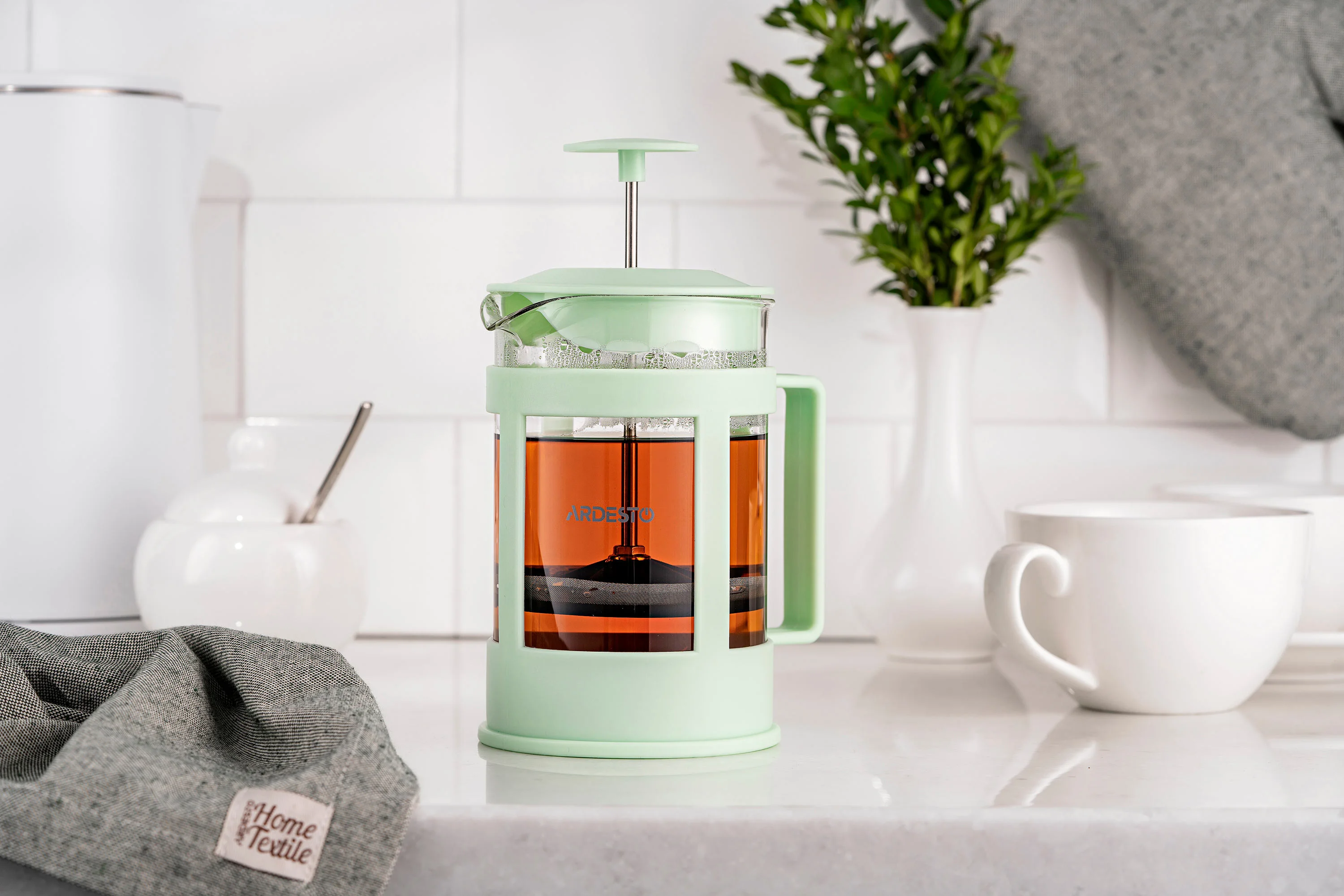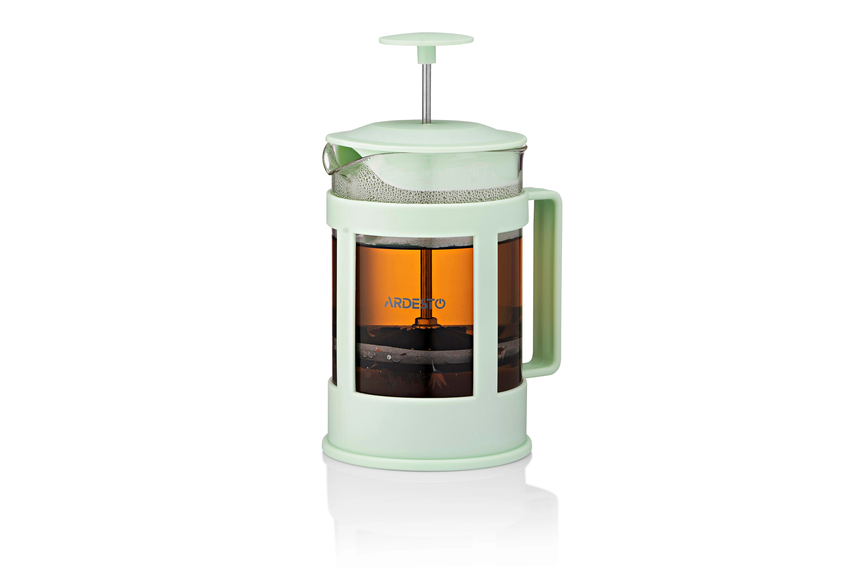 Френч-прес Ardesto Fresh, 800мл, боросилікатне скло, пластик, прозорий, зелений світлий