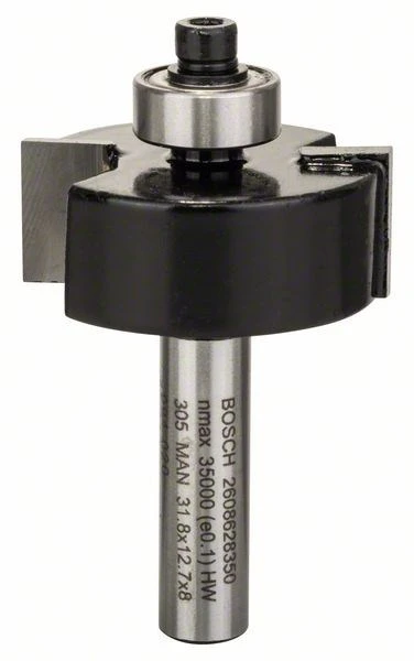 Фреза з хвостовиком 8 мм, має ширину 31,8 мм, діаметр 31,8 мм, загальну довжину 54 мм, робочу — 12,5 мм. Виготовлена з твердого сплаву, з двома лезами і шарикопідшипником, фреза призначена для вибірки паза при роботі з деревиною і листовим матеріалом. Знадобиться при виробництві меблів, виготовленні рам, вікон, дверей. Шарикопідшипник допомагає точно вести по заготівлі без шаблону.