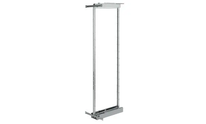 Фронтальний висувний механізм колонки з системою повного висуву, самозасувом та амортизатором призначений для внутрішньої висоти корпусу 1900-2300 мм, для ширини корпусу 500 мм. Механізм з можливістю регулювання по висоті, з затискним растровим з'єднанням шини з несучою рамою і тримача лицевої панелі з несучою рамою, з синхронізацією шин. Несуча здатність 100 кг (вага продуктів), глибина корпусу 500 мм, товщна бокової стінки 16 або 19 мм. Висувний механізм виготовлений зі сталі з пластиковим покриттям кольору білий алюміній.