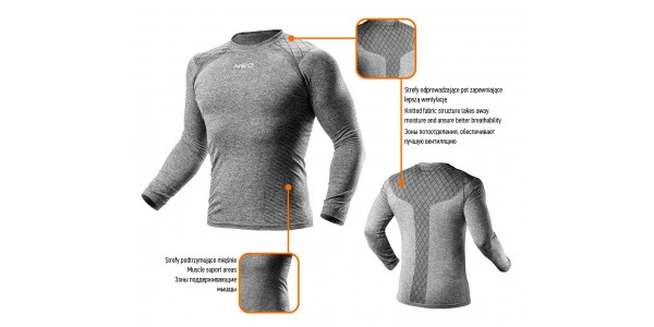 Футболка термоактивна Neo Tools Warm, безшовна, вологовідвідна, L-XL, сірий