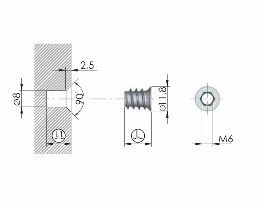Футорка Italiana Ferramenta M6/8/13 - это надежный металлический элемент крепления, предназначенный для соединения мебельных конструкций. Используется для создания прочного резьбового соединения в деревянных или плитных материалах.