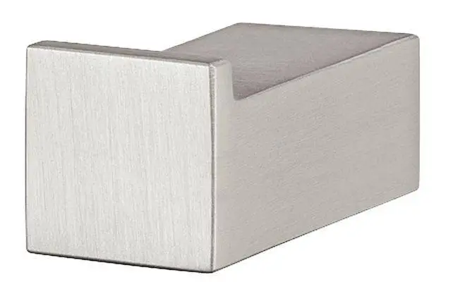Гардеробний гачок квадратного січення, виготовлений з нержавіючої сталі, класу якості 1.4301, з матовою поверхнею. Спосіб кріплення: прихований, шляхом прикручування до вертикальної поверхні. Розміри гачка, ширина/глибина/висота - 19/35/15 мм.
