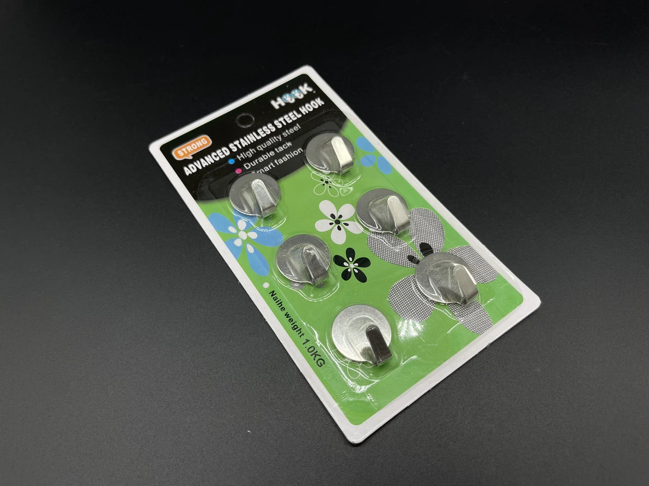 Крючок на двустороннем скотче, 6шт, 22х15мм, Цвет «серебристый»
