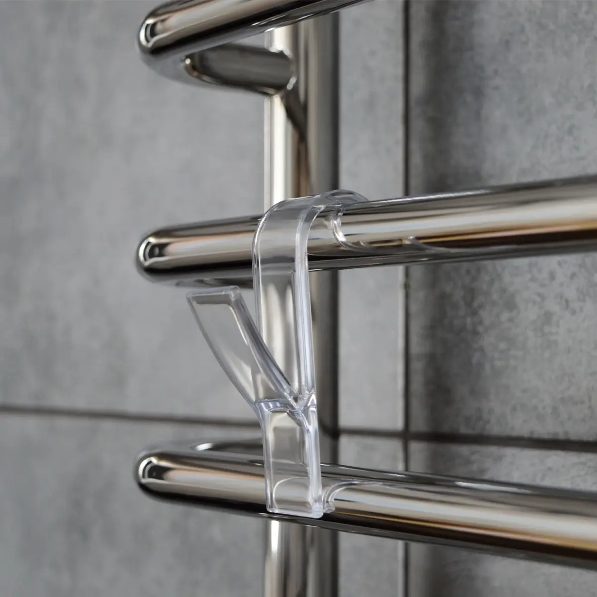 A practical and very convenient hook for standard heated towel rails, made of durable, transparent plastic. This branded accessory is suitable for both NAVIN heated towel rails and most dryers from other manufacturers.
