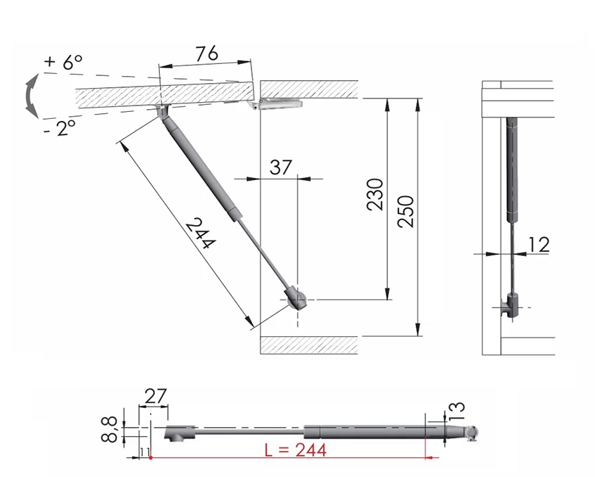 - Газовый лифт K12 используются для автоматического открывания фасадов вверх, что особенно подходит для кухонных шкафов, мебели для офисов, а также компактных мебельных конструкций.