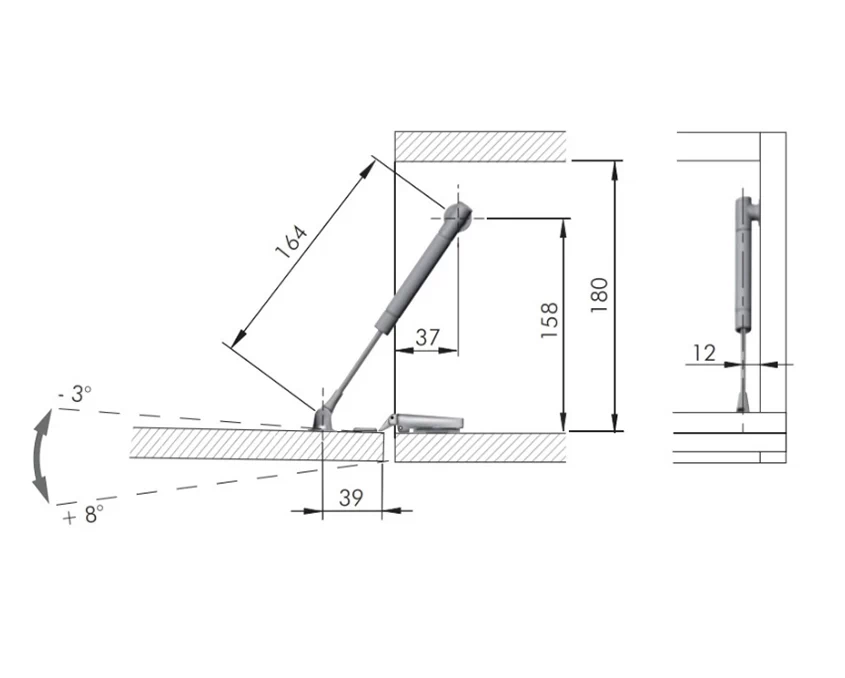 Газовый лифт K12 от Italiana Ferramenta обеспечивает автоматическое открывание фасадов вверх, сочетая в себе элегантный дизайн и функциональность.