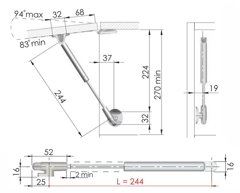 - Совместимость с системой без ручек: вместе с выталкивателем K-PUSH газовый лифт дает возможность использовать фасады без ручек, что создает современный вид мебели
