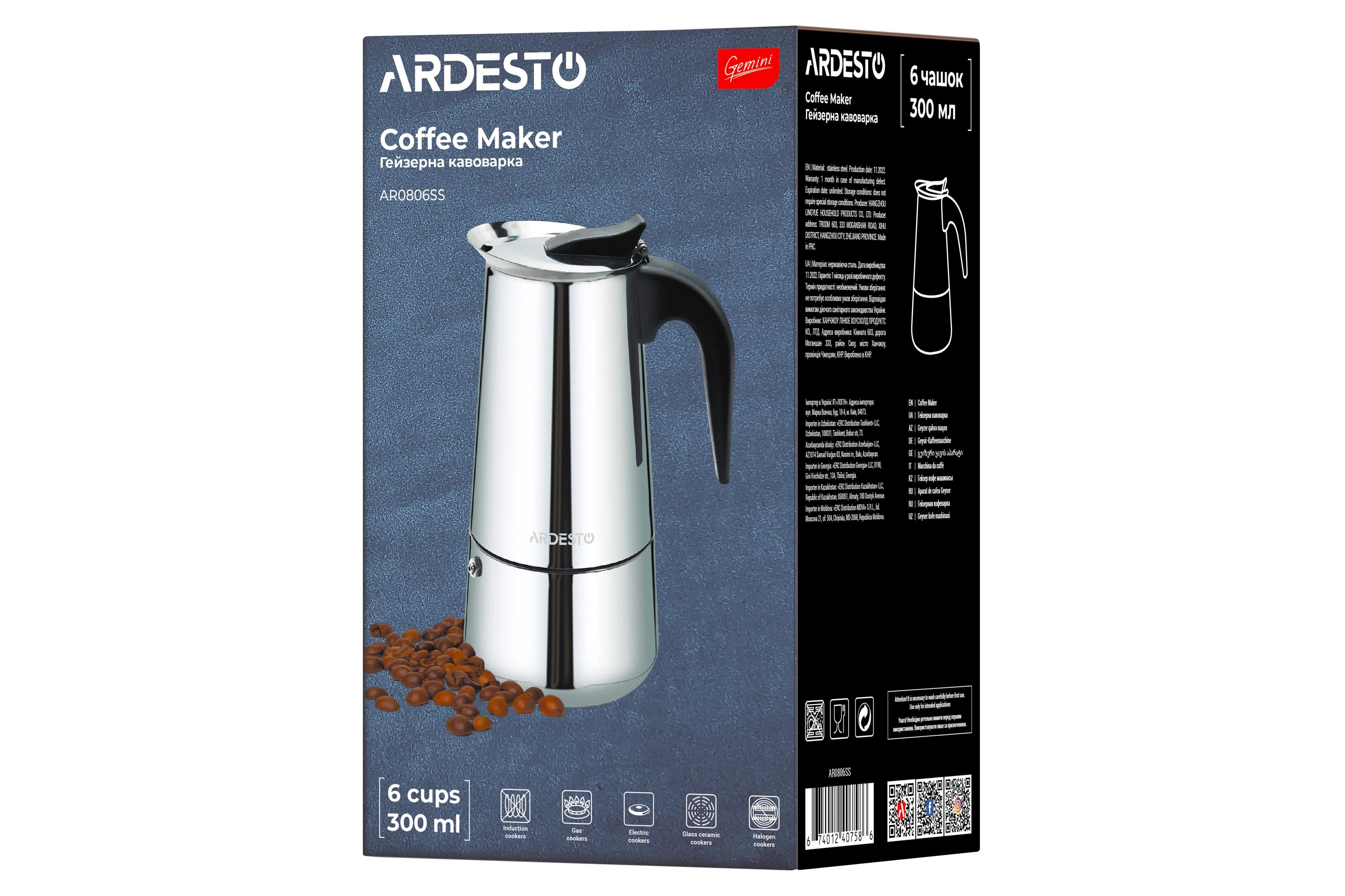 Гейзерна кавоварка Ardesto Gemini Apulia, 0.3л, 6 чашок, нержавіюча сталь