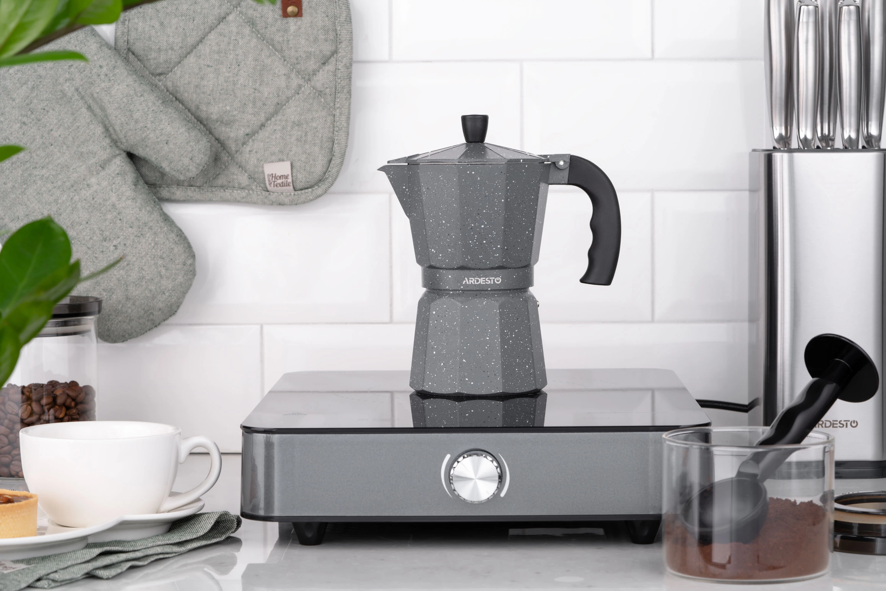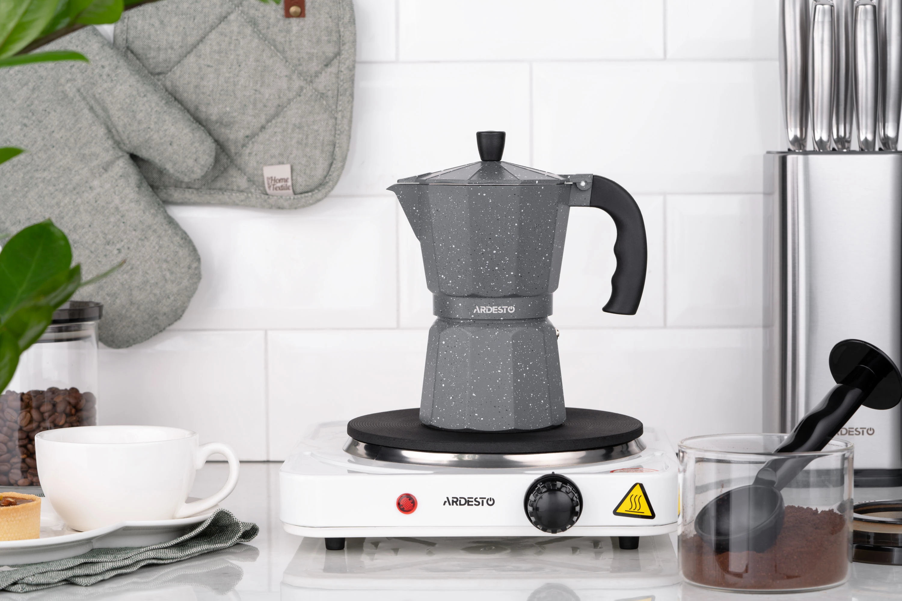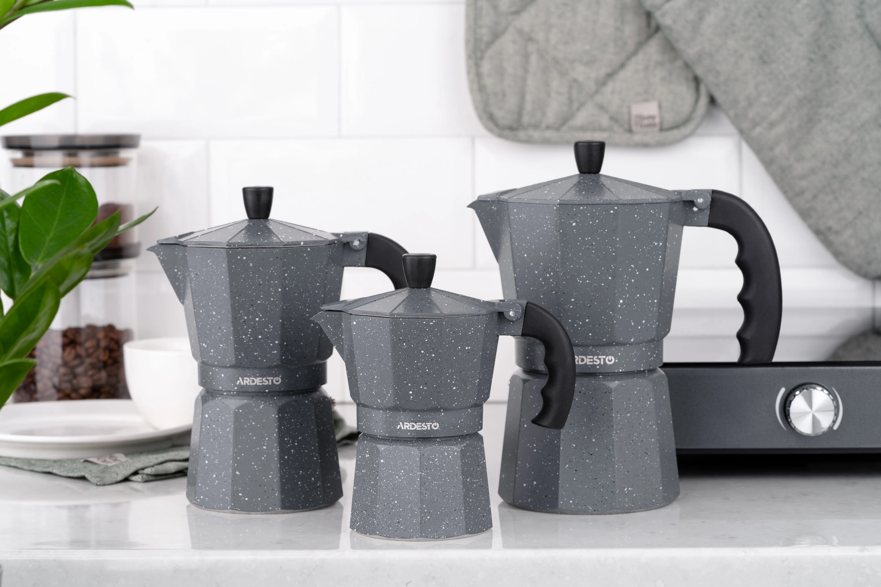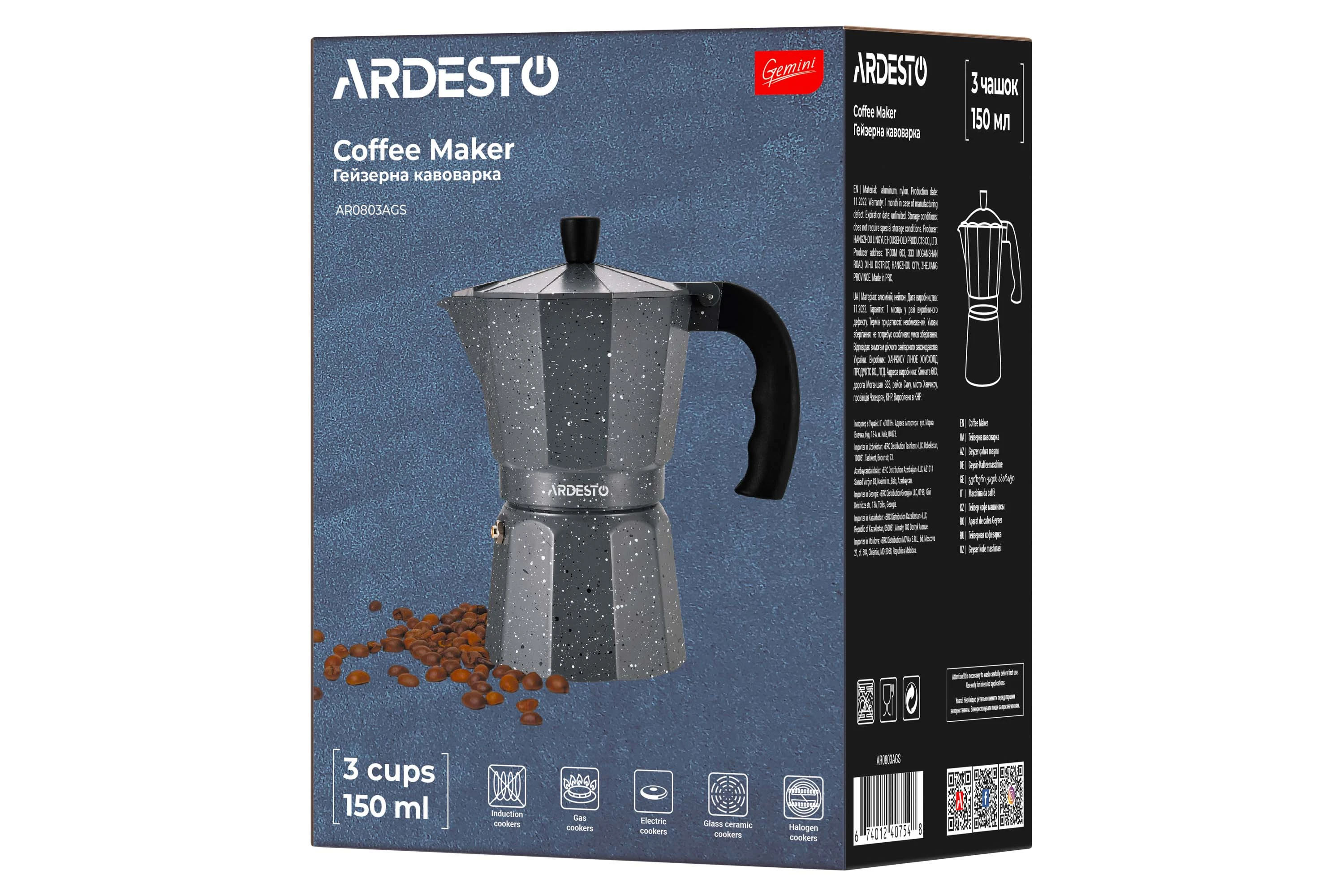 Гейзерна кавоварка Ardesto Gemini Molise, 0.15л, 3 чашки, алюміній, сірий