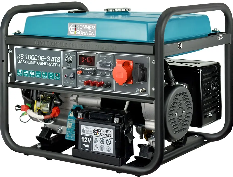 Генератор Konner & Sohnen KS 10000E-3 ATS — це потужна трифазна установка, яка забезпечує стабільну роботу при відключенні електрики завдяки вбудованій системі ATS (Automatic Transfer Switch). Ця функція дозволяє автоматично запускати генератор під час відсутності живлення та вимикати його після відновлення мережі.