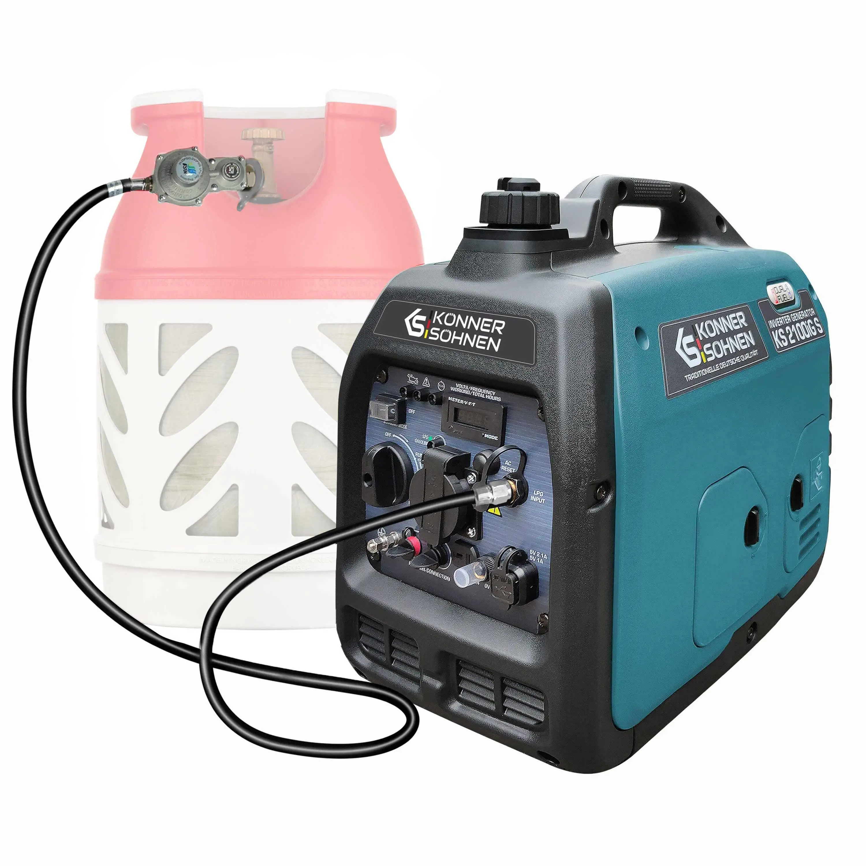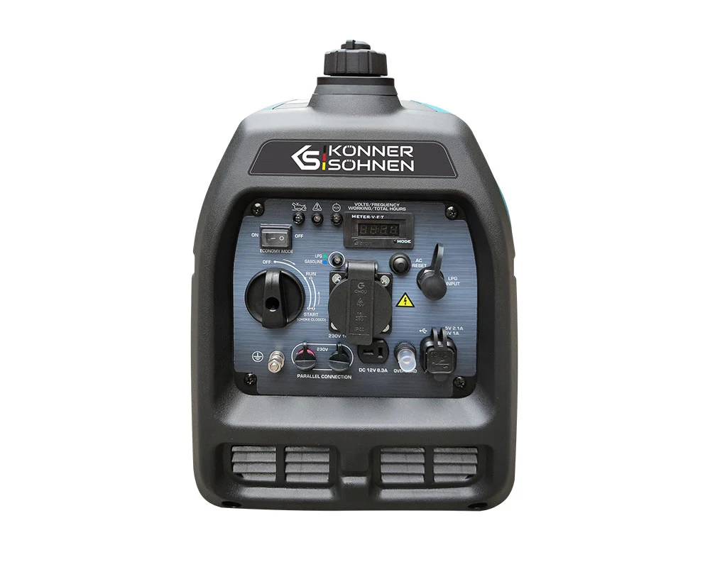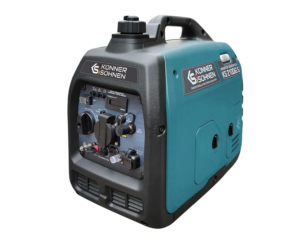 Газобензиновий генератор інверторного типу KS 2100iG S німецької торгової марки Könner&Söhnen в шумозахисному корпусі – це зручне та компактне джерело електроенергії з низьким рівнем шуму. Ключова особливість даної моделі полягає в тому, що вона виробляє електричний струм з правильною синусоїдою. Економічний режим дозволяє знизити витрату палива до 50% при малих навантаженнях завдяки зниженню оборотів двигуна. Альтернатор з мідною обмоткою і потужний двигун K&S гарантують безаварійне і тривале використання та відповідають всім європейським стандартам якості. Наявність LED-дисплея дає можливість якісніше контролювати роботу генератора і своєчасно проводити його технічне обслуговування.