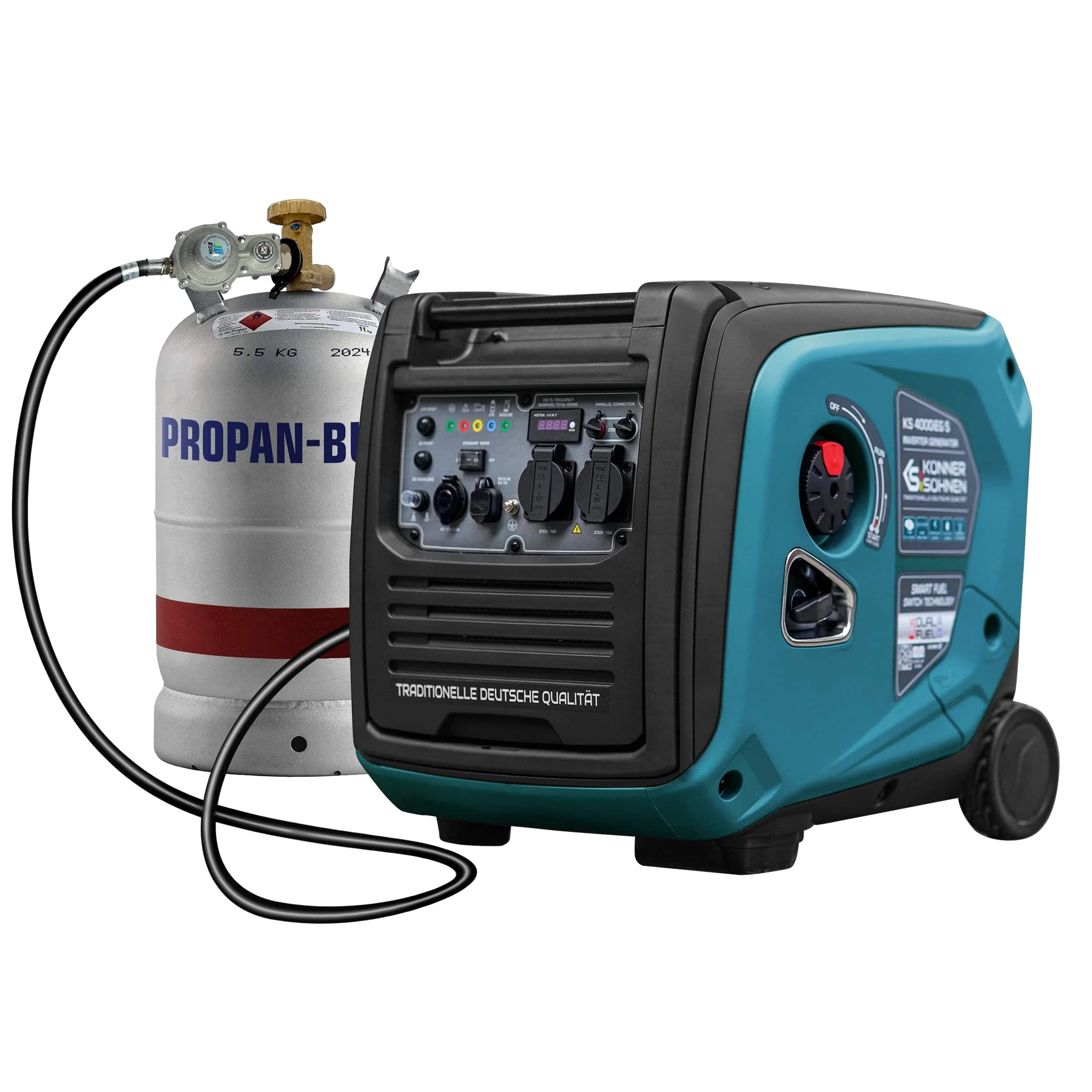 Газобензиновий генератор інверторного типу KS 4000iEG S німецької торгової марки Könner & Söhnen в шумозахисному корпусі – це зручне джерело електроенергії з низьким рівнем шуму. Ключова особливість даної моделі полягає в тому, що вона виробляє електричний струм з правильною синусоїдою.