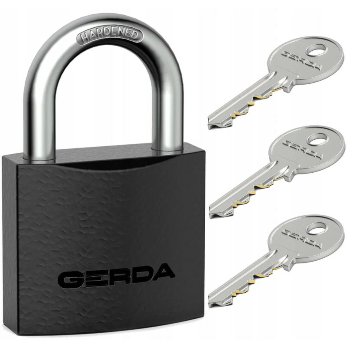 Замок навісного типу серії GERDA KZZS. Виготовлений такий замок із чавунного сплаву. Дужка виготовлена із гартованої сталі. Завдяки чому вона має захи