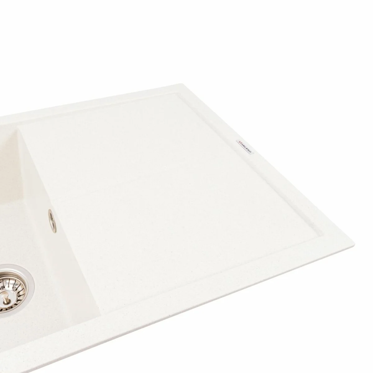 Гранітна матова мийка VALESO MAGNUM 7950 біла в крапку — ідеальне поєднання стилю, практичності та довговічності. Оснащена однією основною чашею та зручним крилом для сушіння, вона створена для ефективного щоденного використання. Розміри мийки 790×500 мм дозволяють легко інтегрувати її в стандартну кухонну стільницю. Гранітне покриття стійке до подряпин, температурних перепадів і побутової хімії. Вишуканий білий колір з крапками додає легкості та сучасності інтер’єру кухні.
