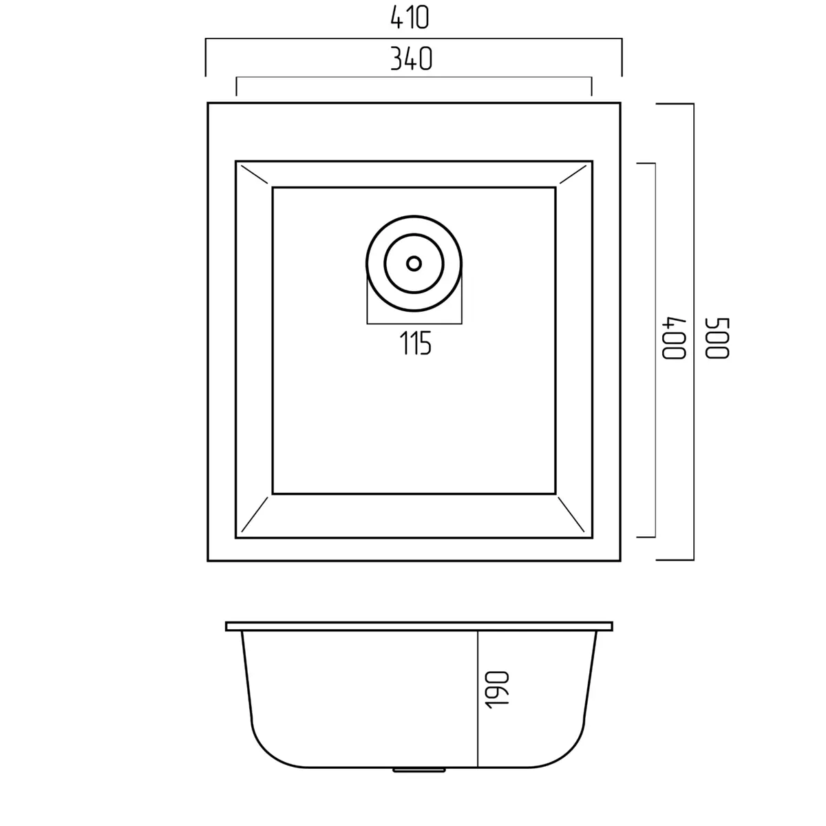 - Размеры основной чаши (ДхШхГ) 340х400х190