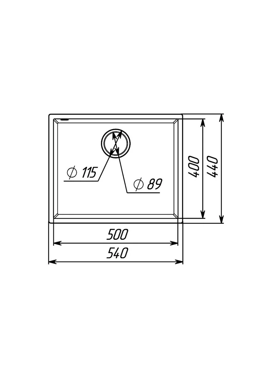 Розміри мийки – 540х440х200 мм, вага – 9,2 кг, сифон – євросифон з широкою горловиною, 110 мм.