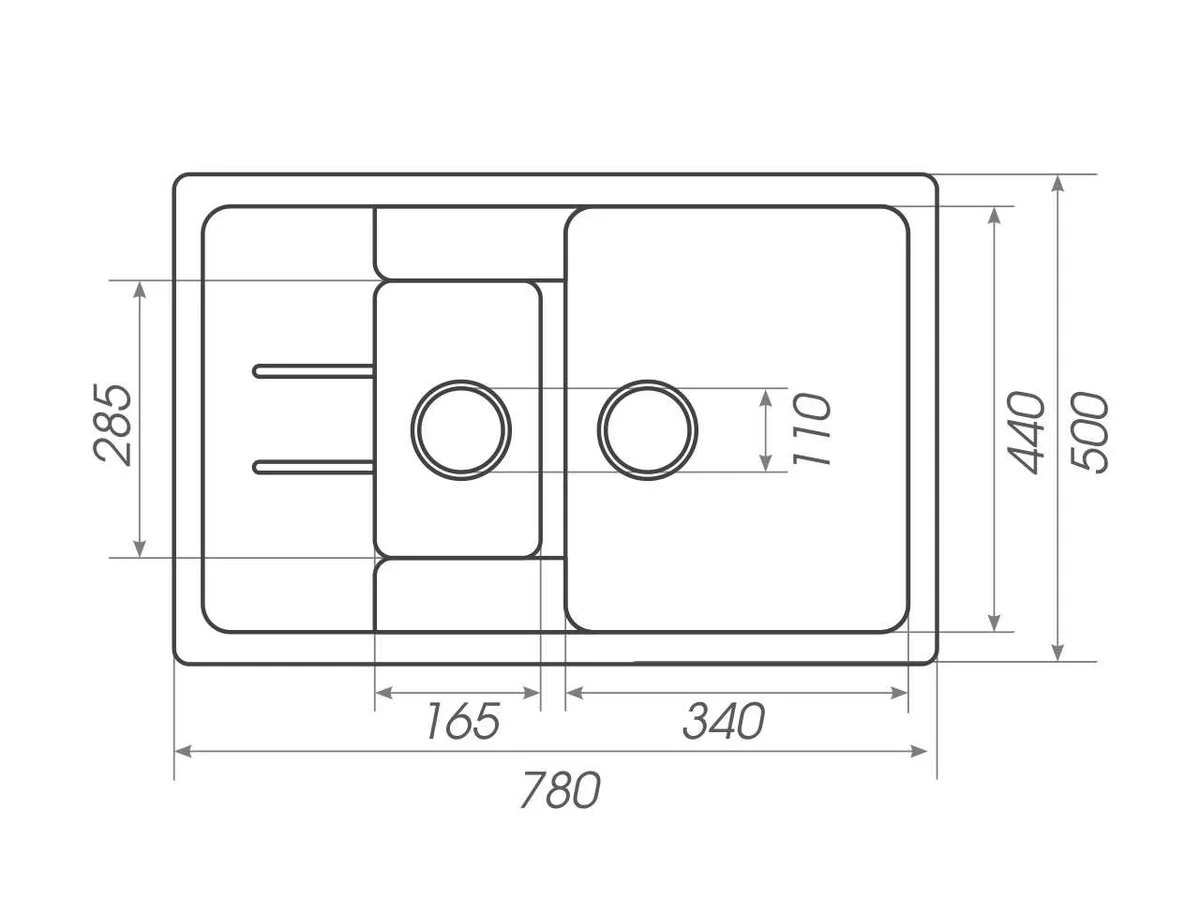 - Размер дополнительной чаши, мм 285x165