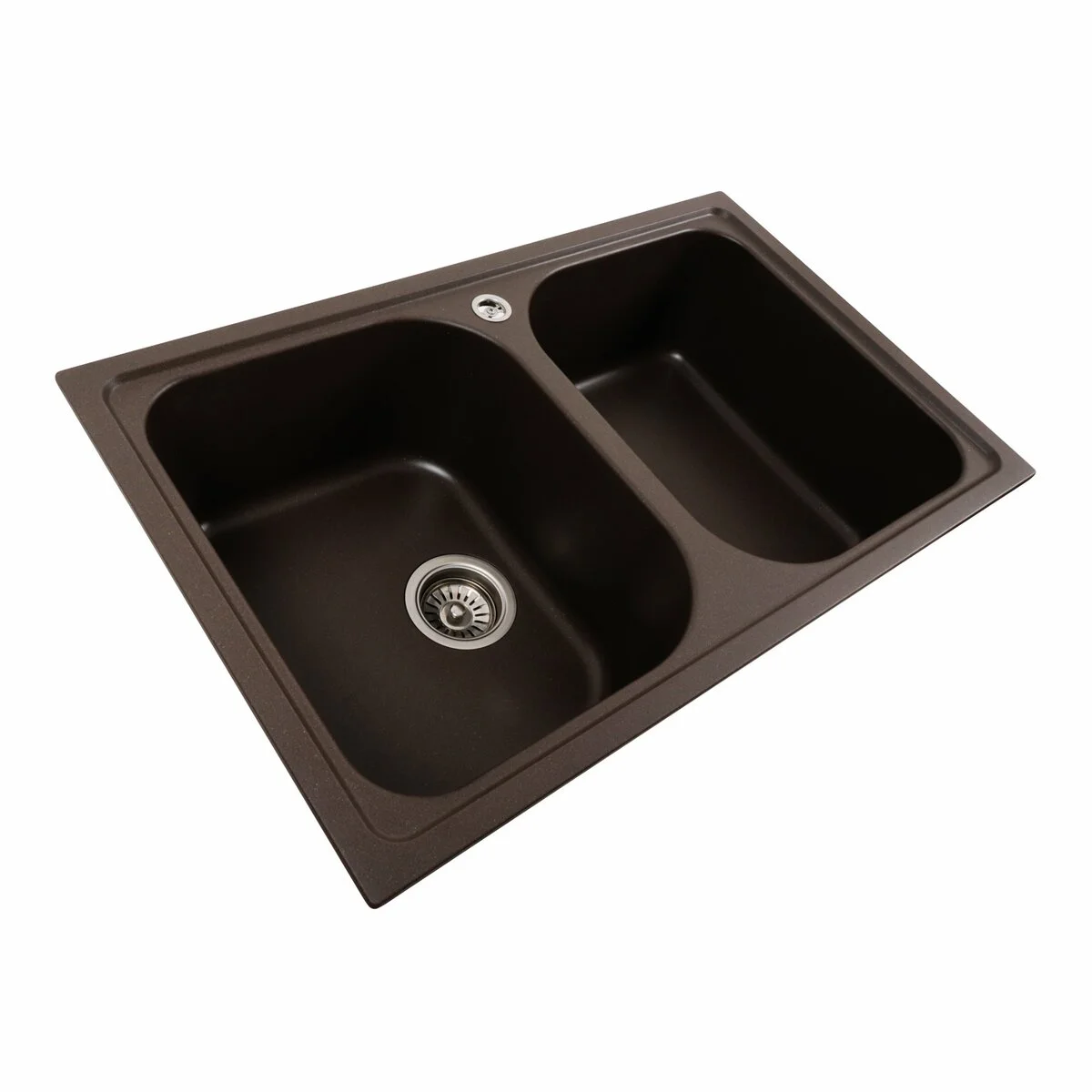 Розміри чаш, 420х335х200 мм, роблять її дуже місткою та зручною у використанні. Мийка має матову фактуру і приємний для ока колір-Темна скеля, що дозволяє їй легко вписатися в інтер'єр кухні. Мийка виготовлена в Україні із якісної німецької сировини за технологією Solid Surface з дотриманням усіх необхідних стандартів.