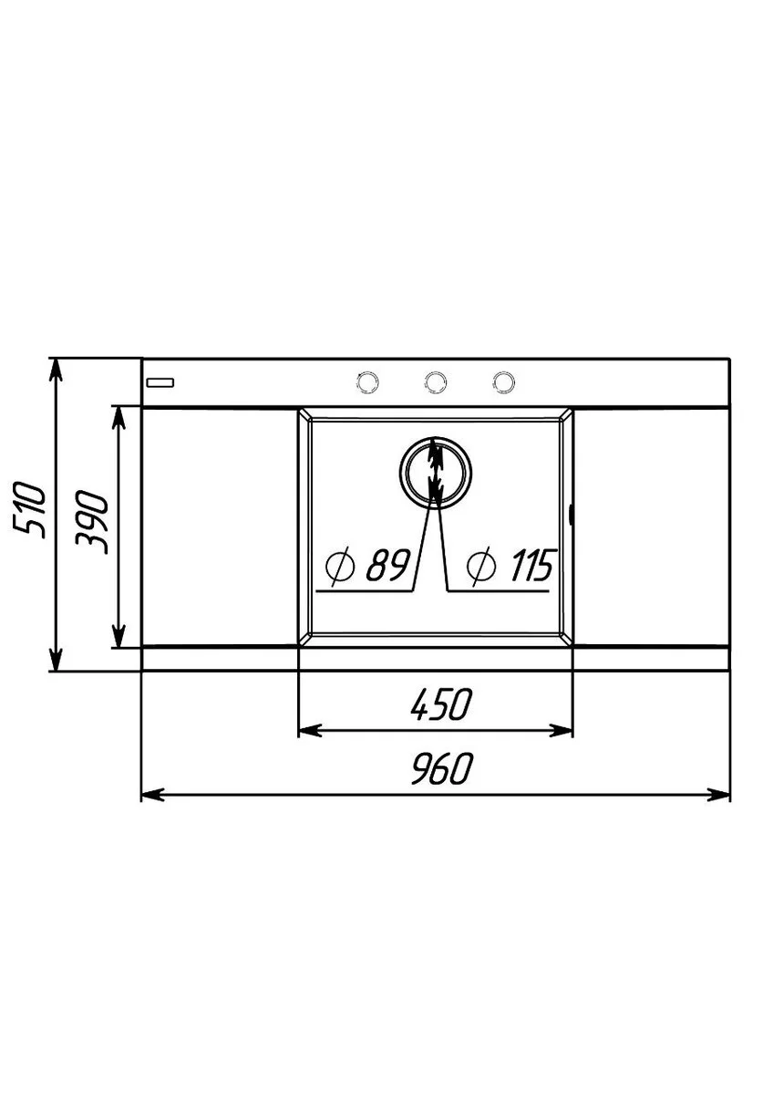 З розмірами шириною 960 мм і довжиною 510 мм, висотою 210 мм ця мийка робить прекрасний вибір для різних кухонь. Квадратна форма надає їй сучасний вигляд, а її розміри дозволяють ефективно використовувати простір навіть у невеликих кухнях.Розмір чаші 450х390х210
