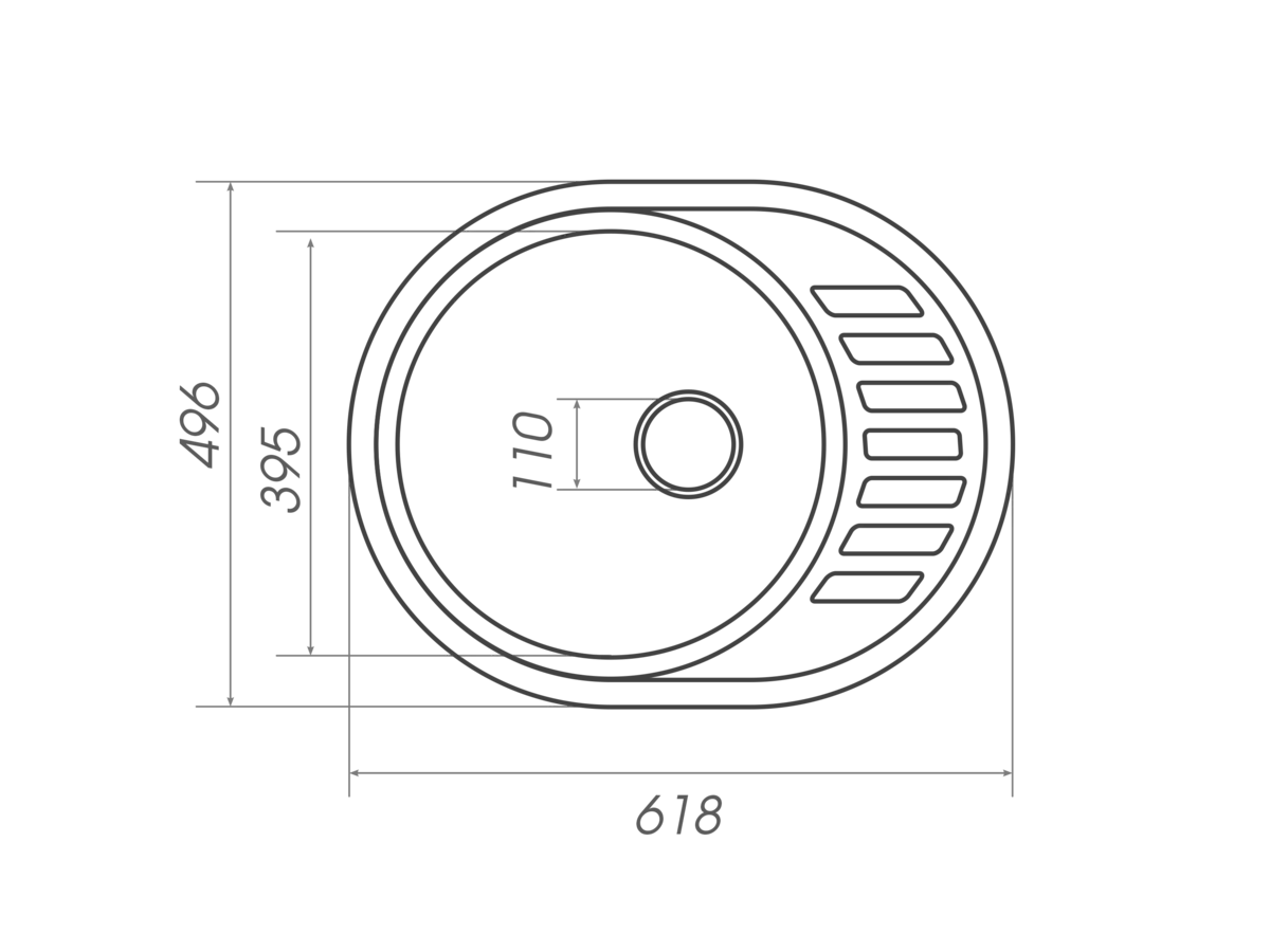 Розміри мийки – 618х496х220 мм, вага – 7,5 кг, сифон – євросифон з широкою горловиною, 110 мм.