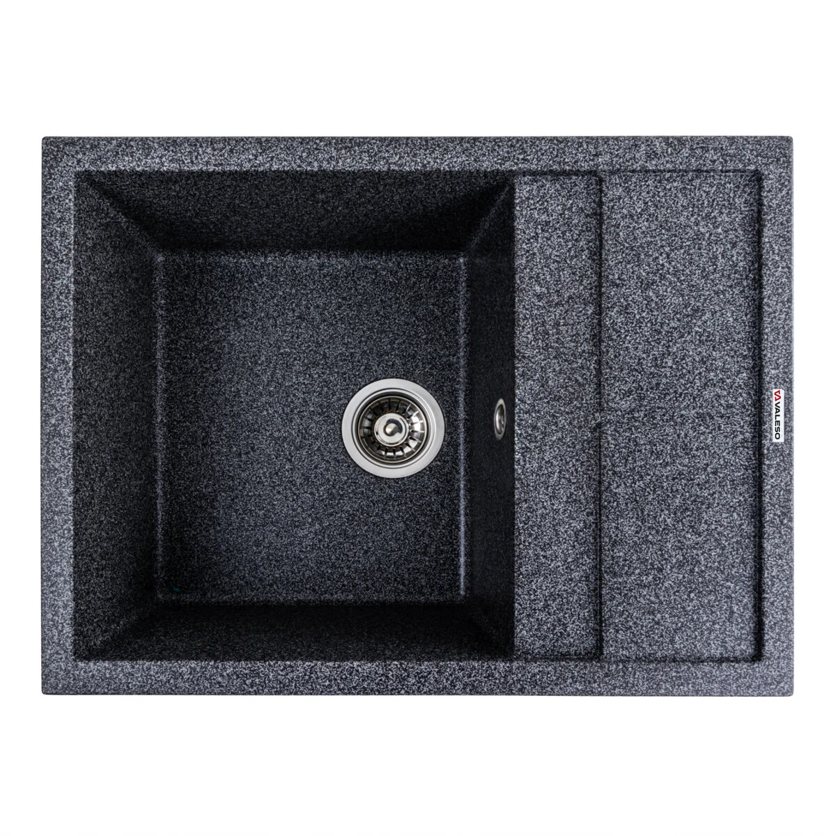 Гранітна мийка для кухні VALESO 6550 LOTOS матовий Графіт - це вишукане рішення для вашої кухні, яке поєднує в собі стильний дизайн і практичність.