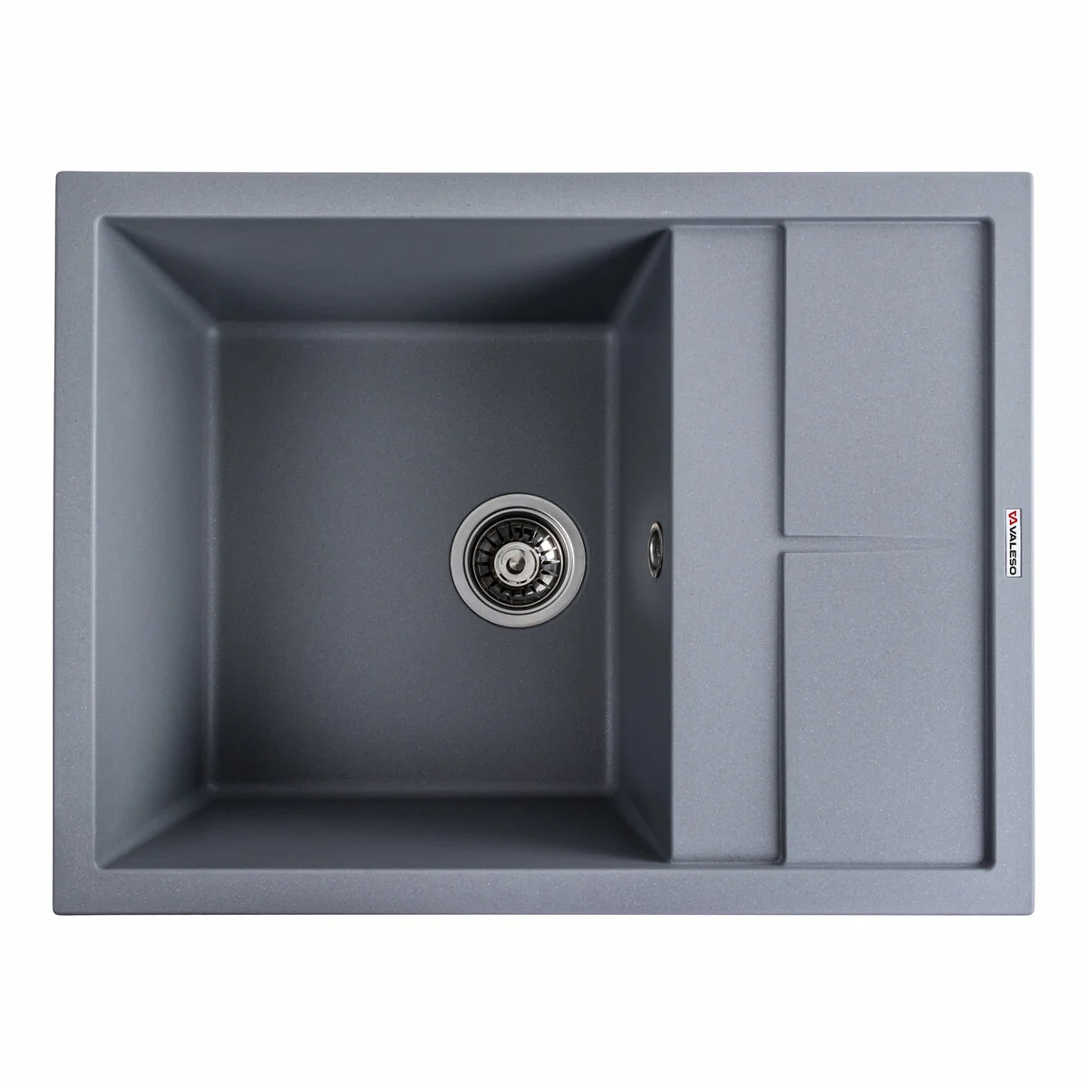 Гранітна мийка для кухні VALESO 6550 LOTOS матовий сірий металік - це вишукане рішення для вашої кухні, яке поєднує в собі стильний дизайн і практичність.